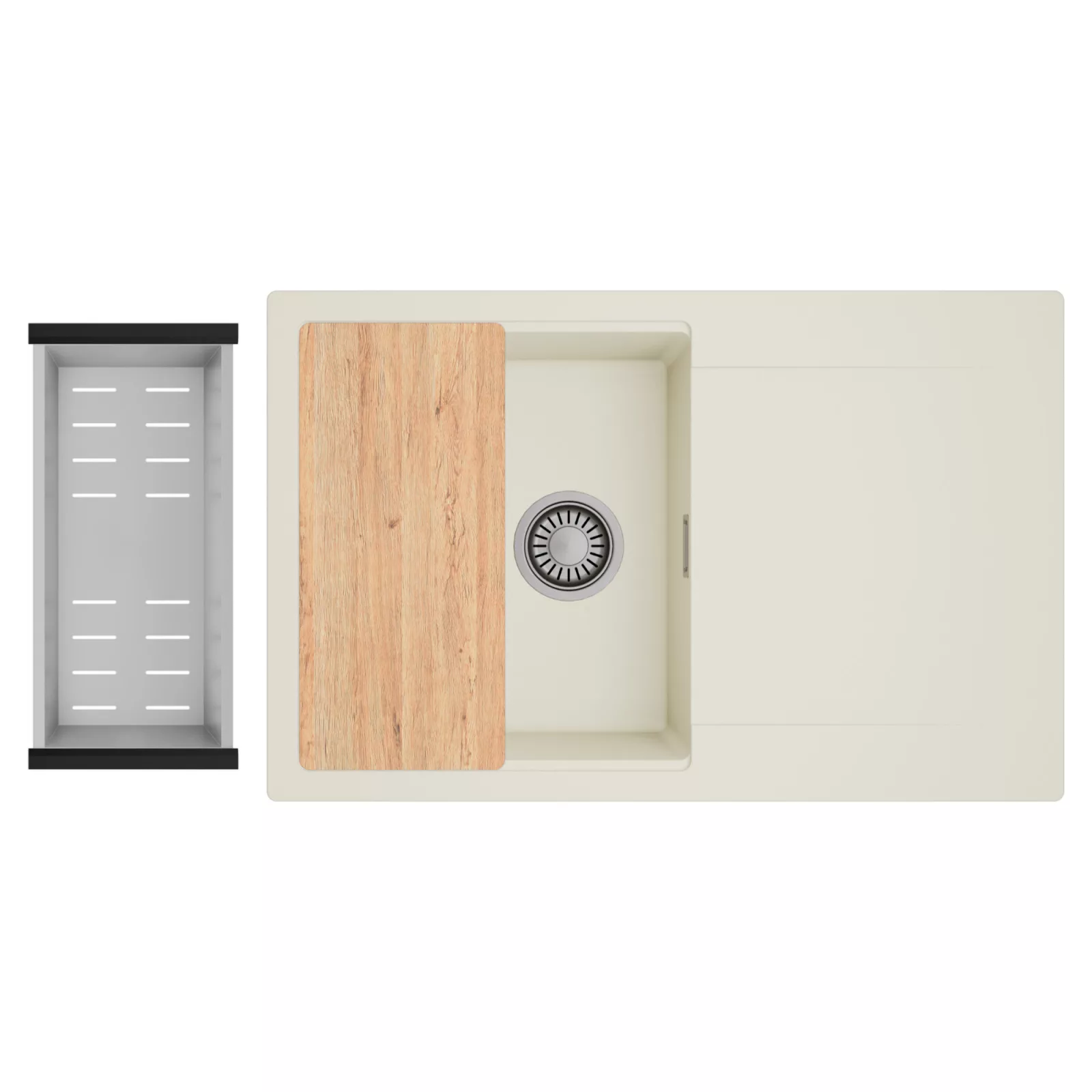 HD Onyx White 78 egymedencés mosogatótálca szett, vágódeszkával és csepegtetőkosárral, tört fehér