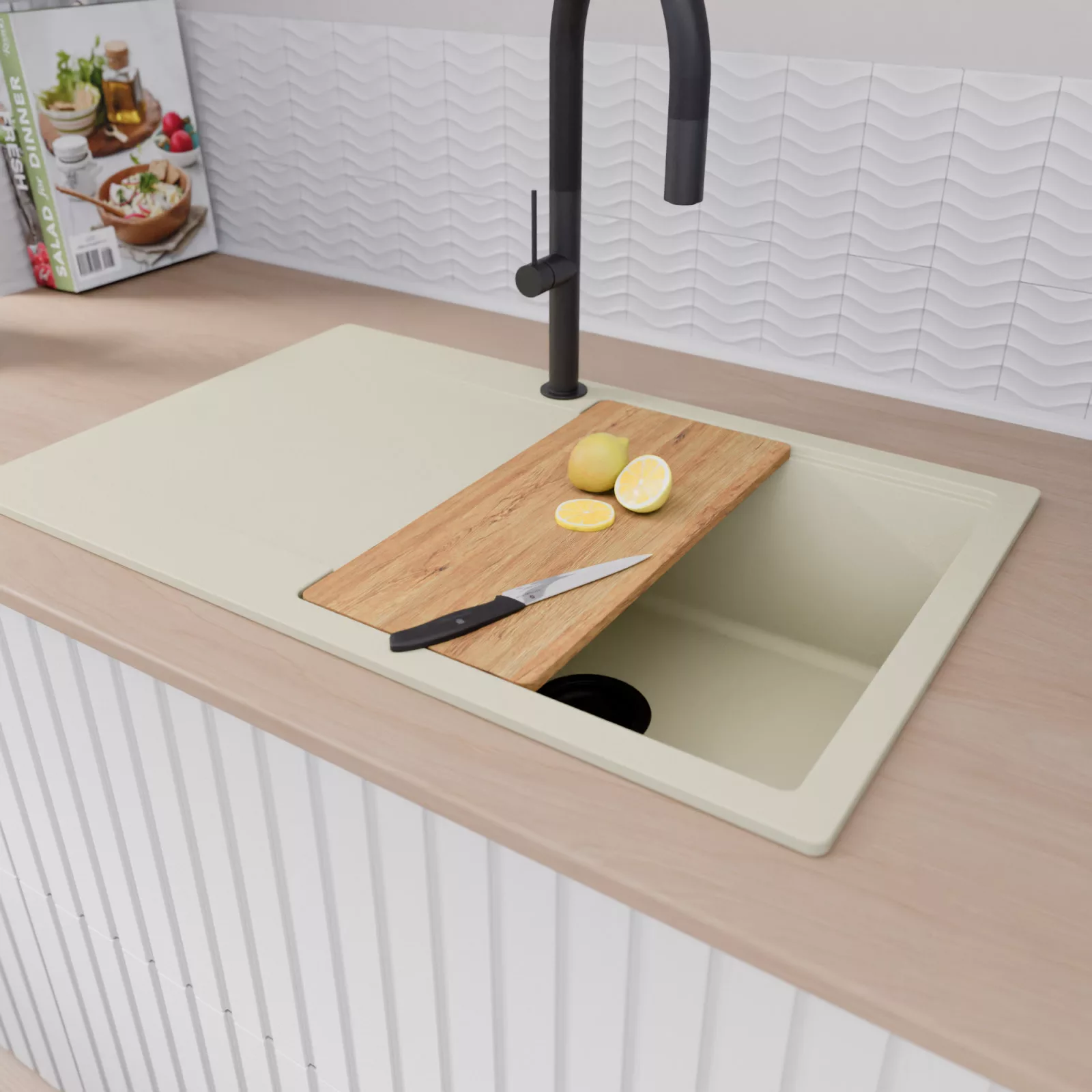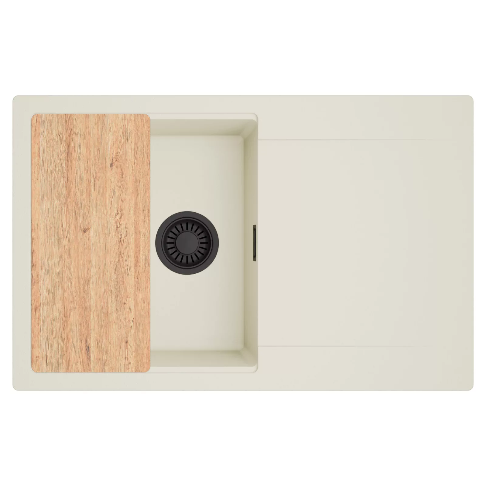 HD Onyx White 78 egymedencés mosogatótálca szett, vágódeszkával, tört fehér