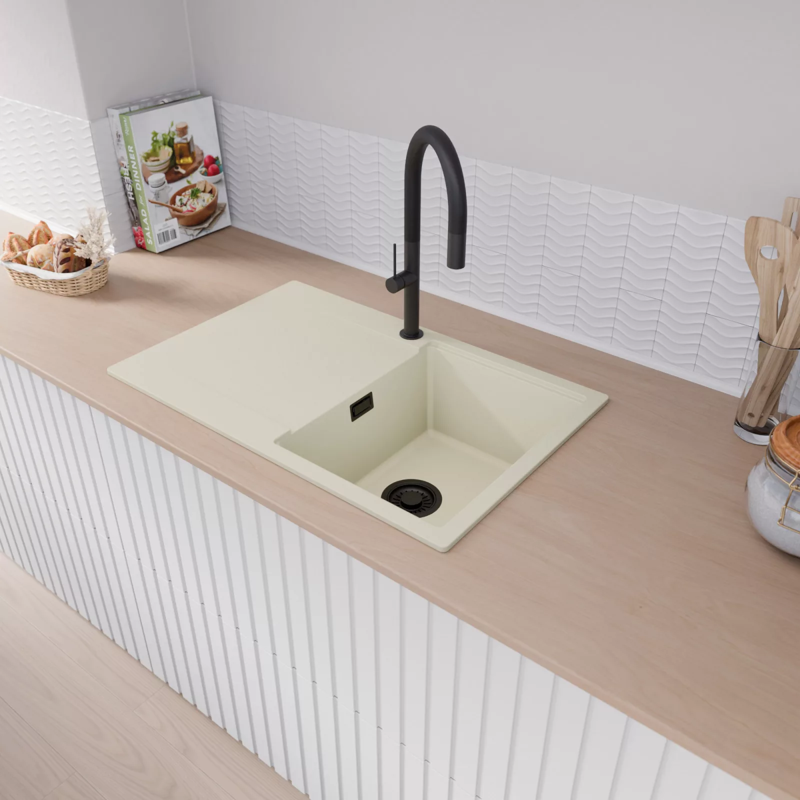 A mosogató prémium minőségű gránit kompozitból készült. Letisztult megjelenése mellett rendkívül praktikus, így bármilyen stílusú konyhába harmonikusan illeszkedik. A strapabíró gránit anyag hosszú távon is megbízható használatot garantál.