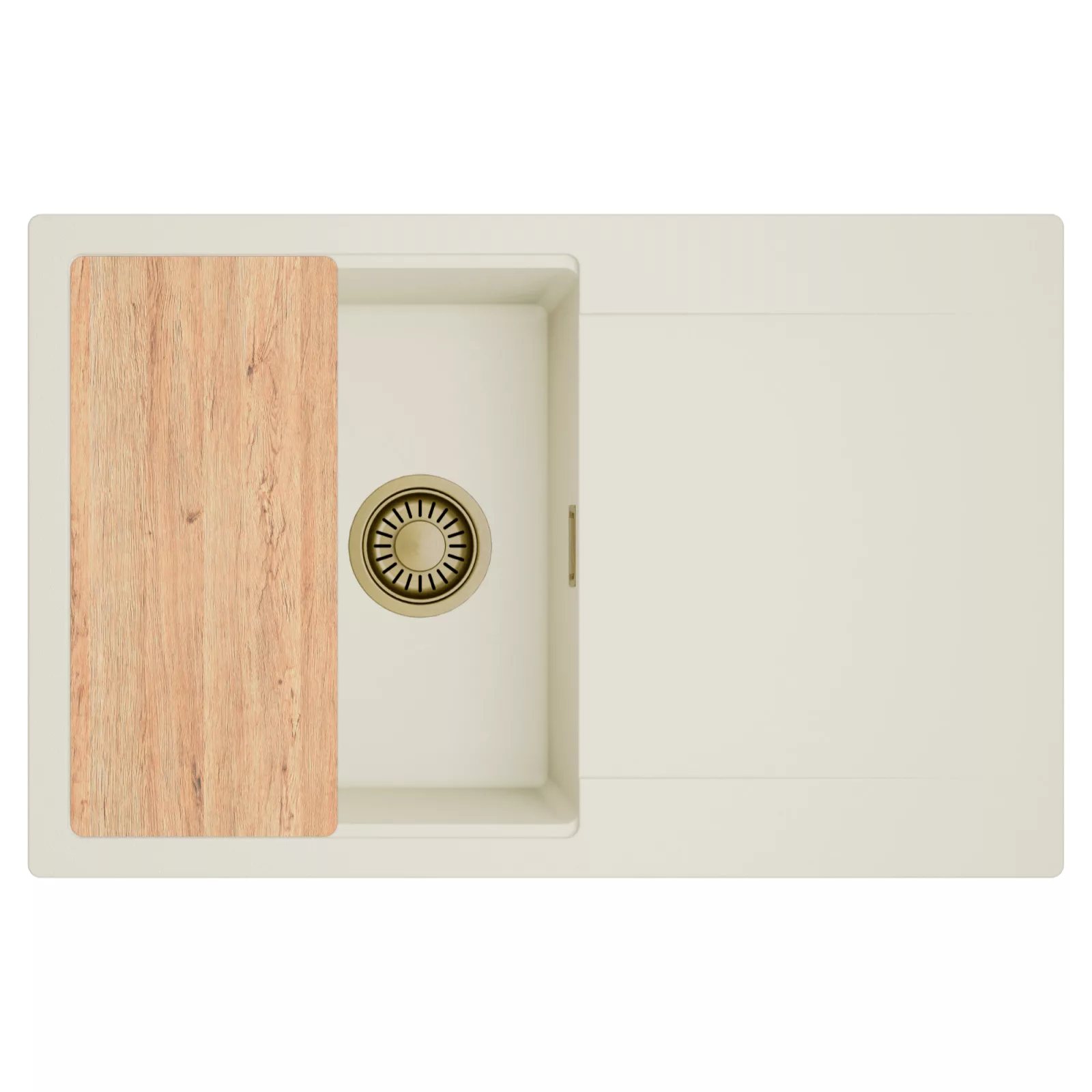 HD Onyx White 78 egymedencés mosogatótálca szett, vágódeszkával, tört fehér