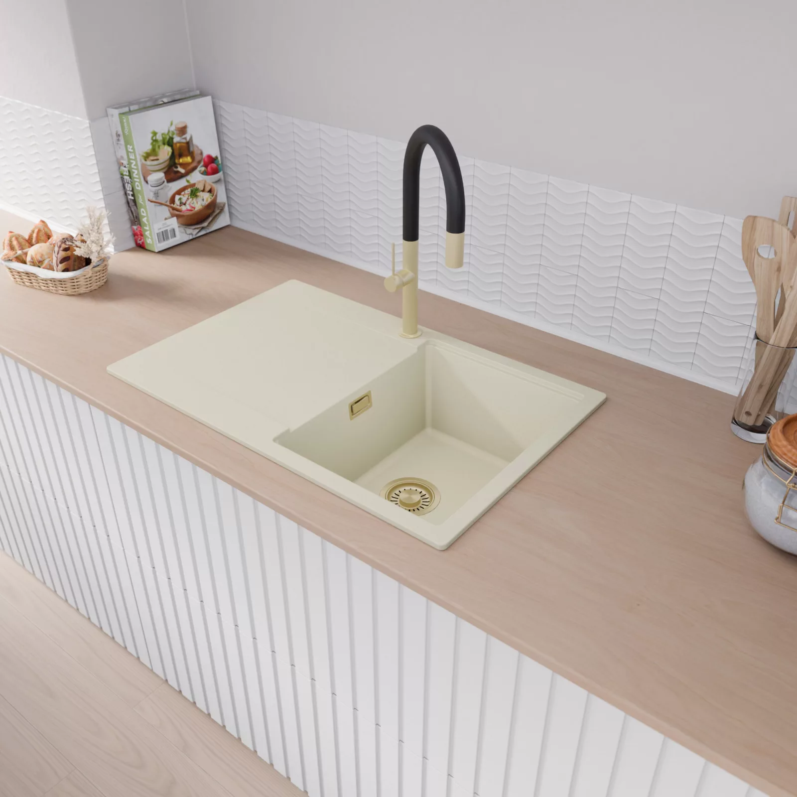 A mosogató prémium minőségű gránit kompozitból készült. Letisztult megjelenése mellett rendkívül praktikus, így bármilyen stílusú konyhába harmonikusan illeszkedik. A strapabíró gránit anyag hosszú távon is megbízható használatot garantál.