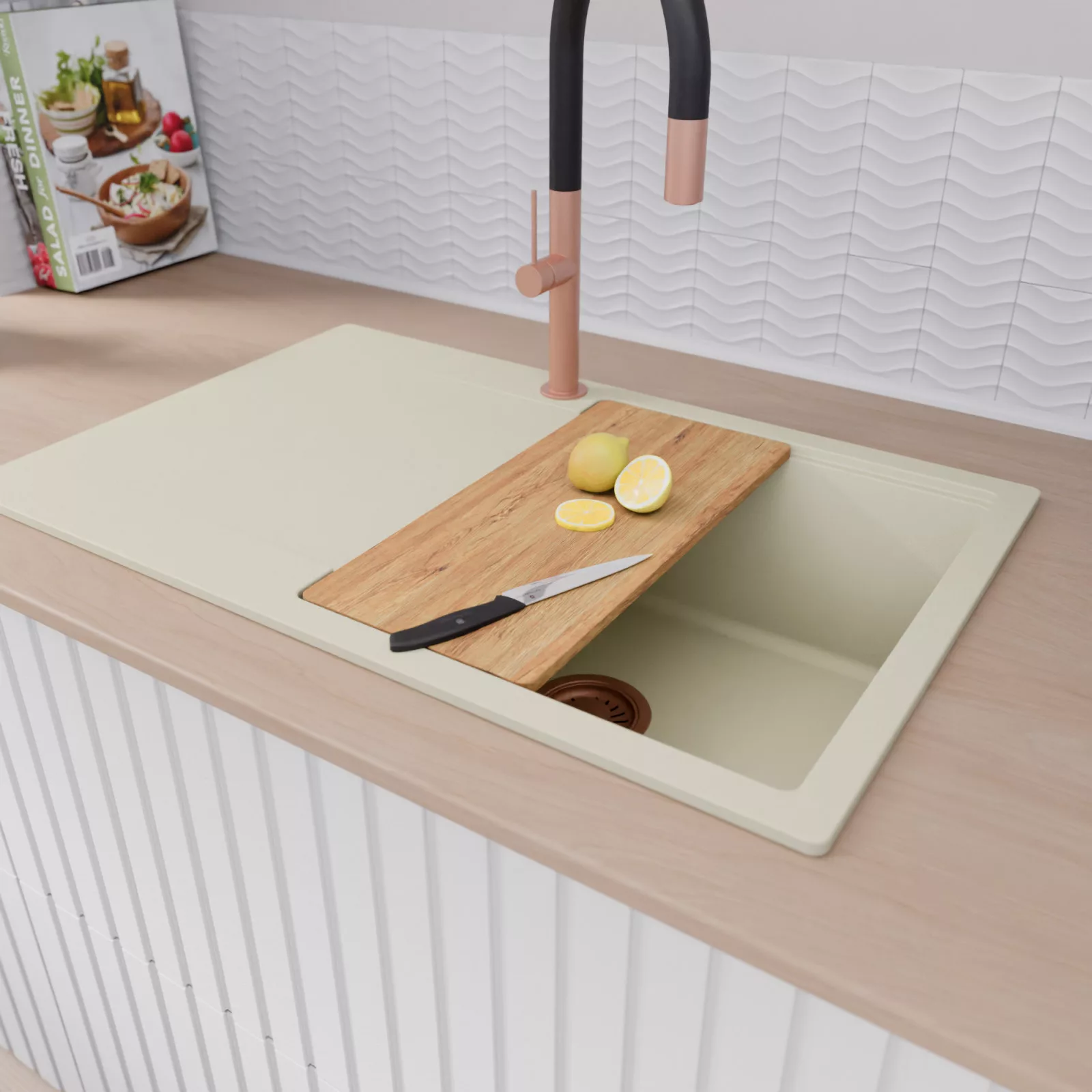 Egy perem. Több funkció. Teljes értékű konyhai tér egyetlen mosogatótálcával.