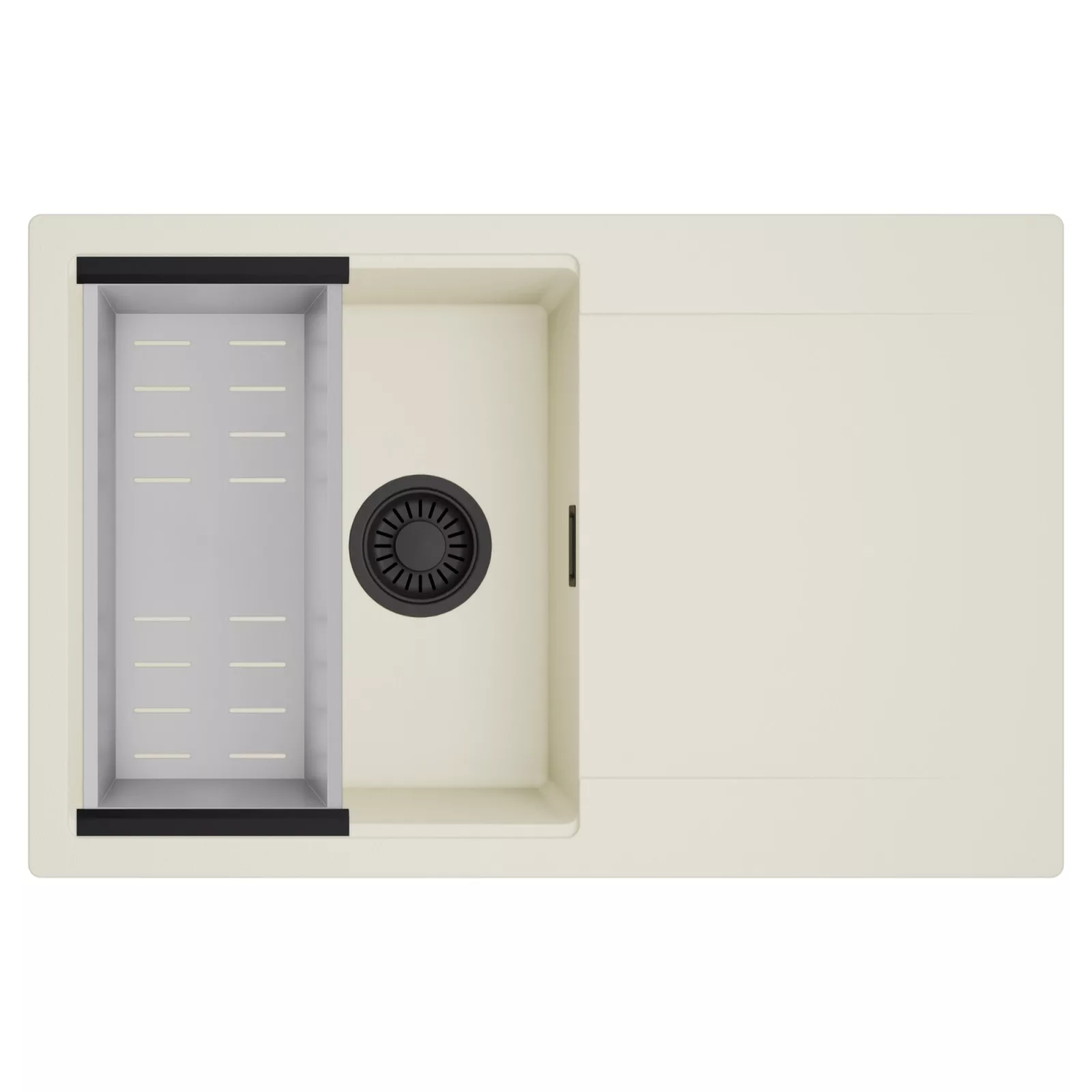 HD Onyx White 78 egymedencés mosogatótálca szett, csepegtetőkosárral, tört fehér