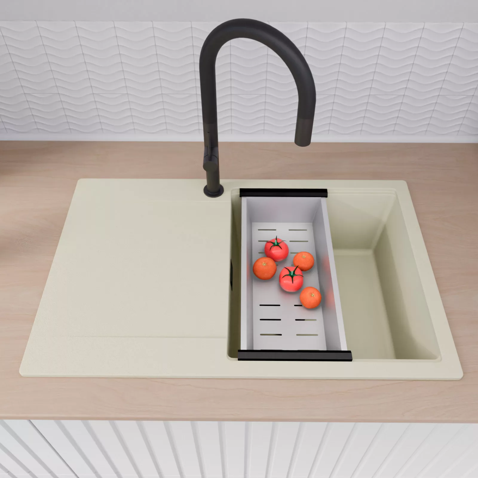 A mosogató prémium minőségű gránit kompozitból készült. Letisztult megjelenése mellett rendkívül praktikus, így bármilyen stílusú konyhába harmonikusan illeszkedik. A strapabíró gránit anyag hosszú távon is megbízható használatot garantál.
