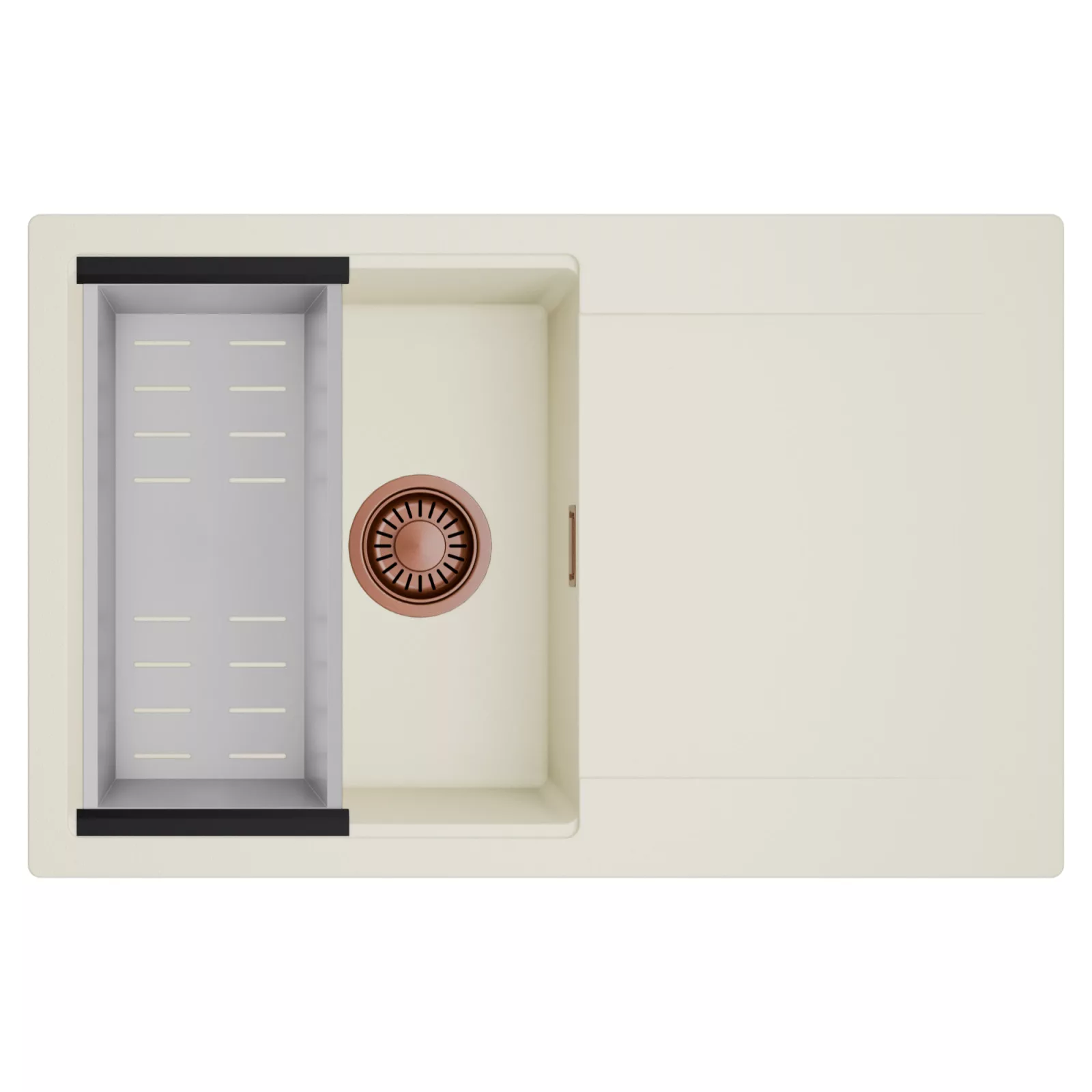 HD Onyx White 78 egymedencés mosogatótálca szett, csepegtetőkosárral, tört fehér