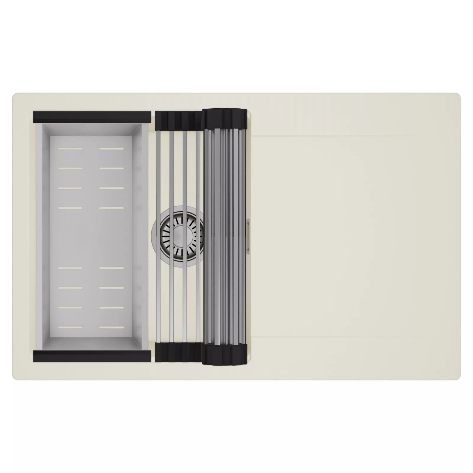 HD Onyx White 78 egymedencés mosogatótálca szett, csepegtetőráccsal és kosárral, tört fehér