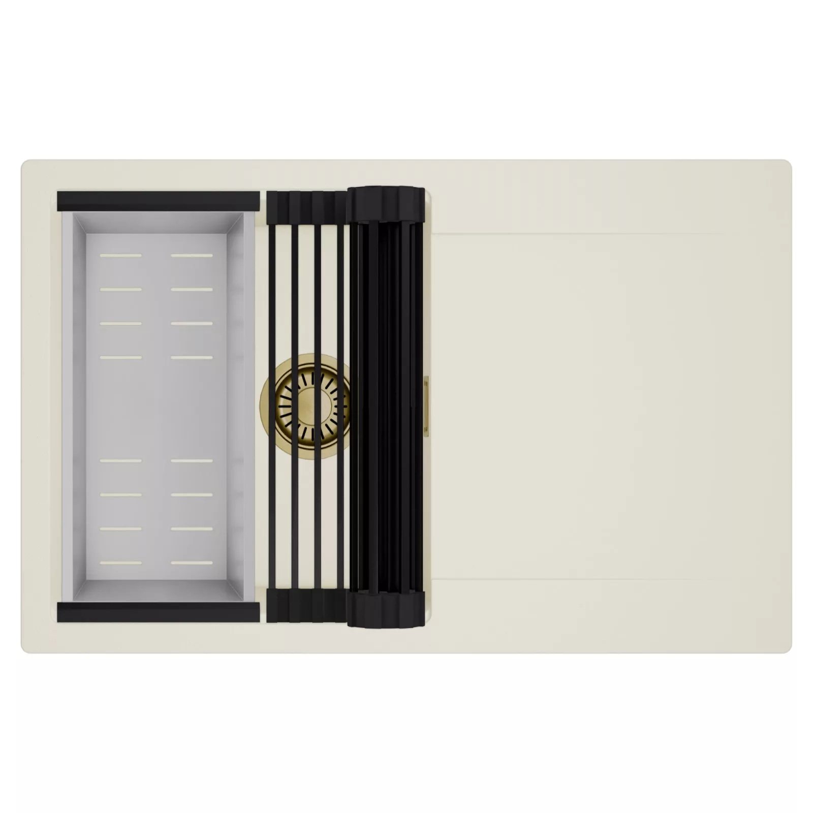HD Onyx White 78 egymedencés mosogatótálca szett, csepegtetőráccsal és kosárral, tört fehér
