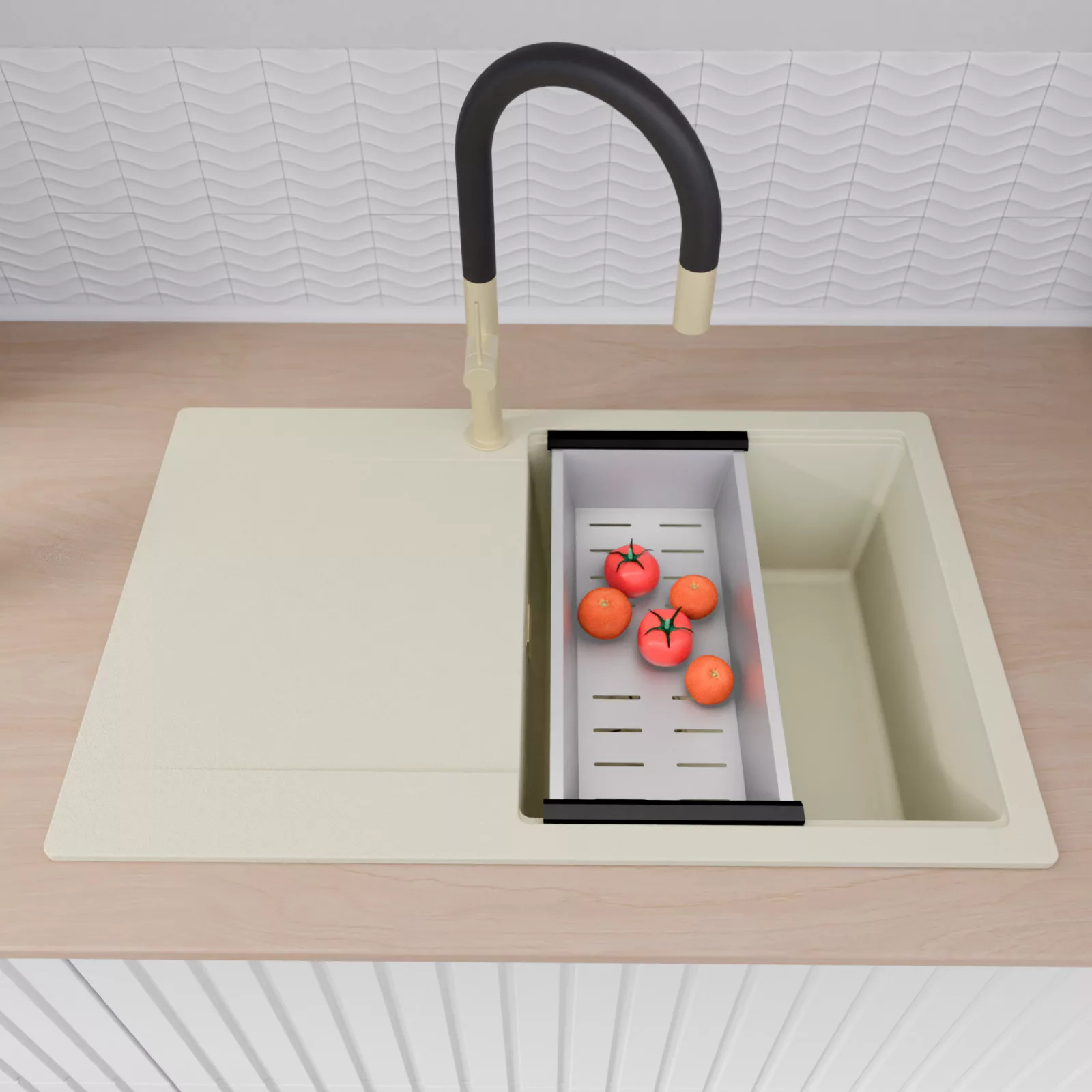 Mosogatónk magas természetes kőőrlemény-tartalmú gránit kompozitból készül, amely rendkívüli stabilitást és tartósságot biztosít. Az anyag ellenáll a magas hőmérsékletnek, a hirtelen hőingadozásoknak, valamint az ütéseknek és karcolásoknak is. Sima, zárt felülete könnyen tisztán tartható, ellenáll a foltosodásnak és az elszíneződéseknek, így hosszú éveken át megőrzi esztétikus megjelenését. Meggyőződésünk, hogy ezzel a gránit mosogatóval a mindennapi konyhai teendők kényelmesebbé és élvezetesebbé válnak.