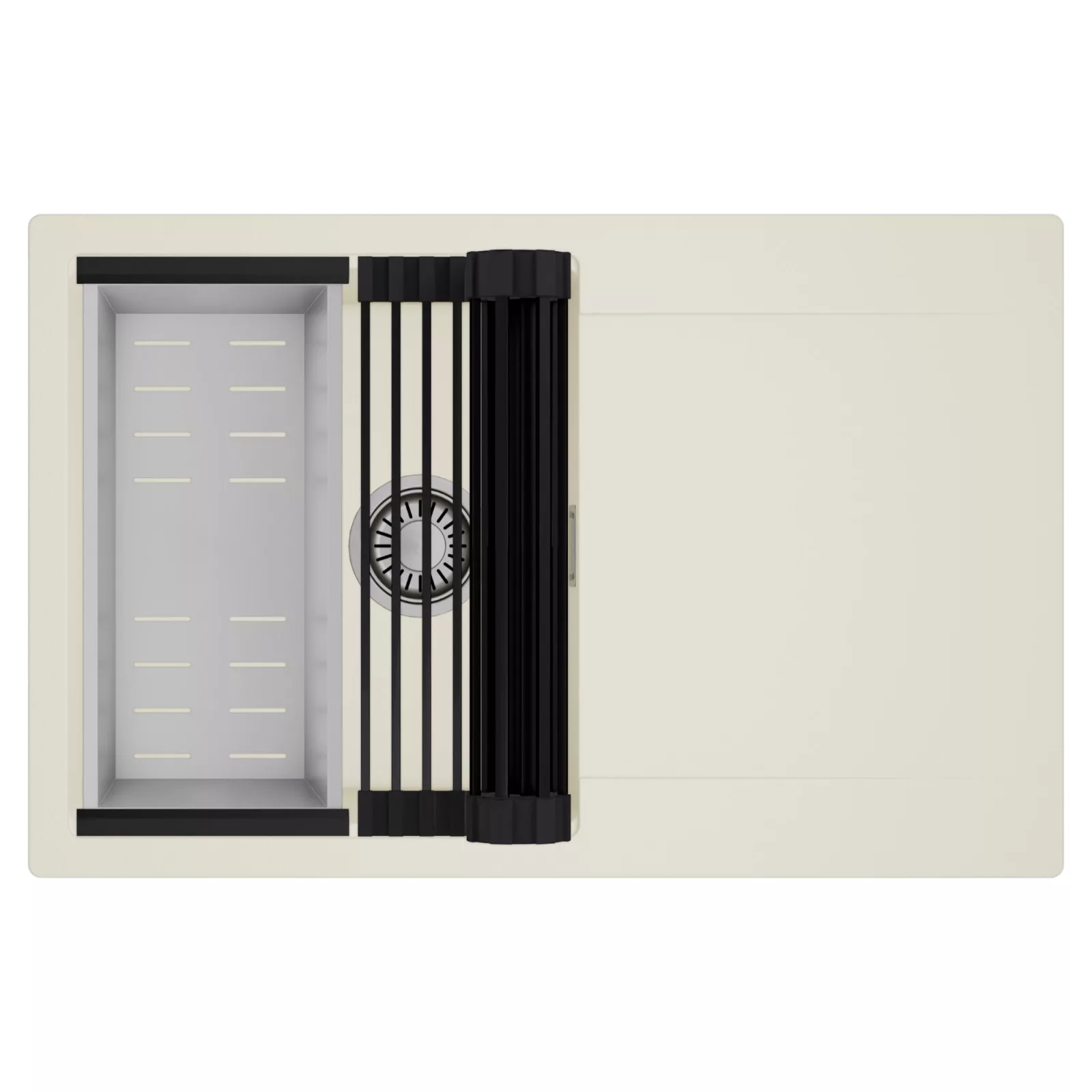 HD Onyx White 78 egymedencés mosogatótálca szett, csepegtetőráccsal és kosárral, tört fehér