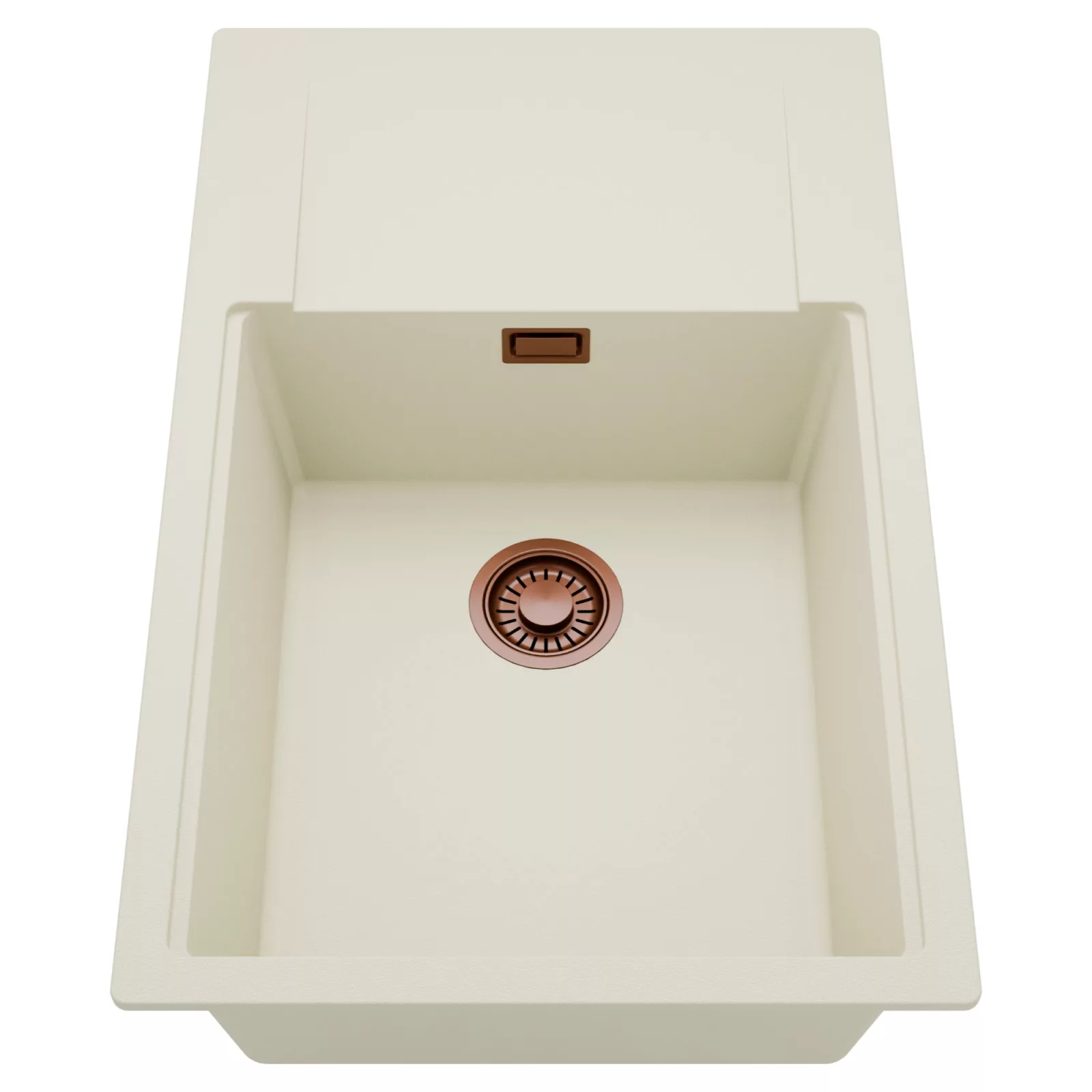 A mosogató prémium minőségű gránit kompozitból készült, amely kiváló ellenállást biztosít a mindennapi használat során keletkező karcolásokkal szemben. A strapabíró gránit felület hosszú távon is megőrzi esztétikus megjelenését, így a mosogató intenzív igénybevétel mellett is megmarad újszerű állapotában.