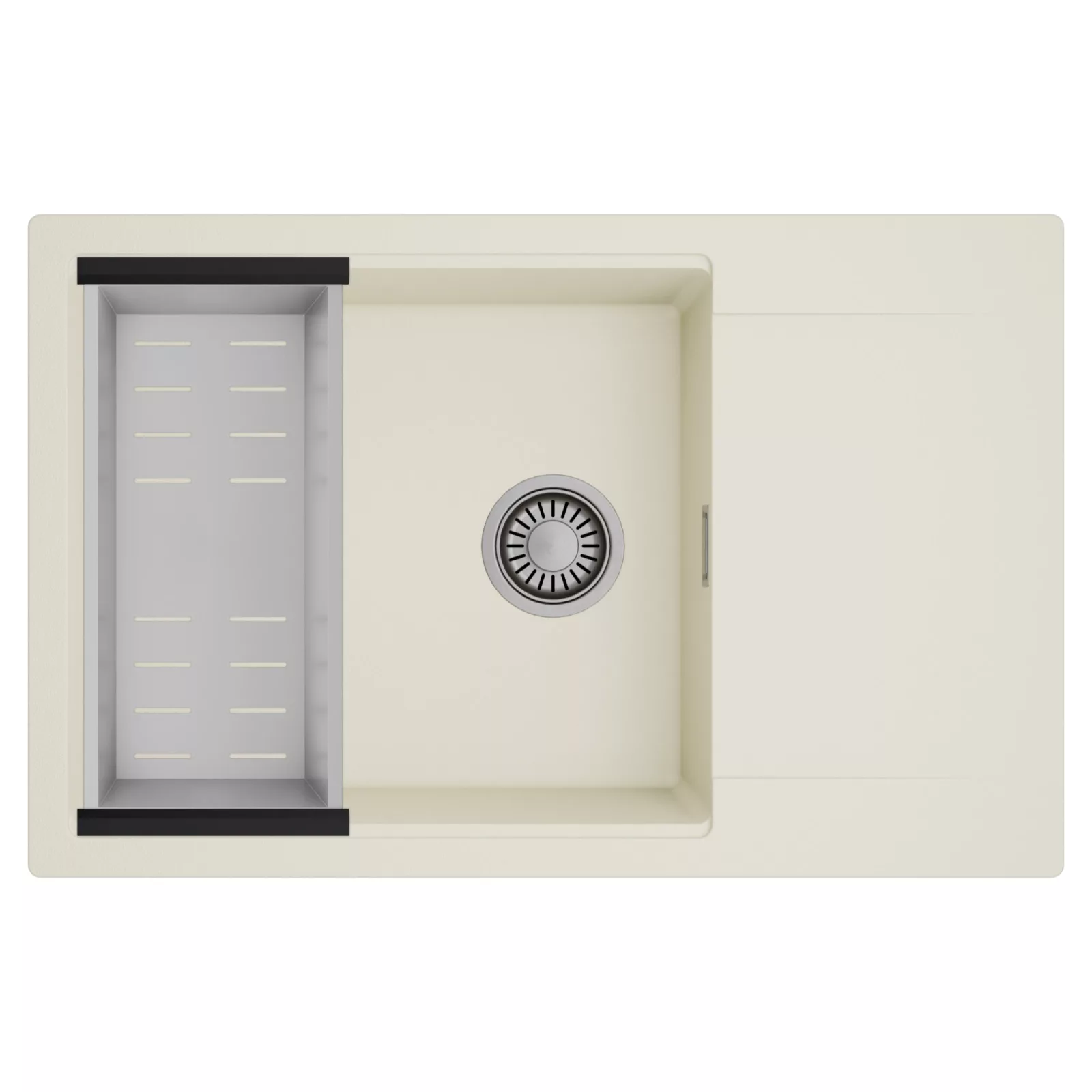 HD Onyx White 78-XL egymedencés mosogatótálca szett, csepegtetőkosárral, tört fehér