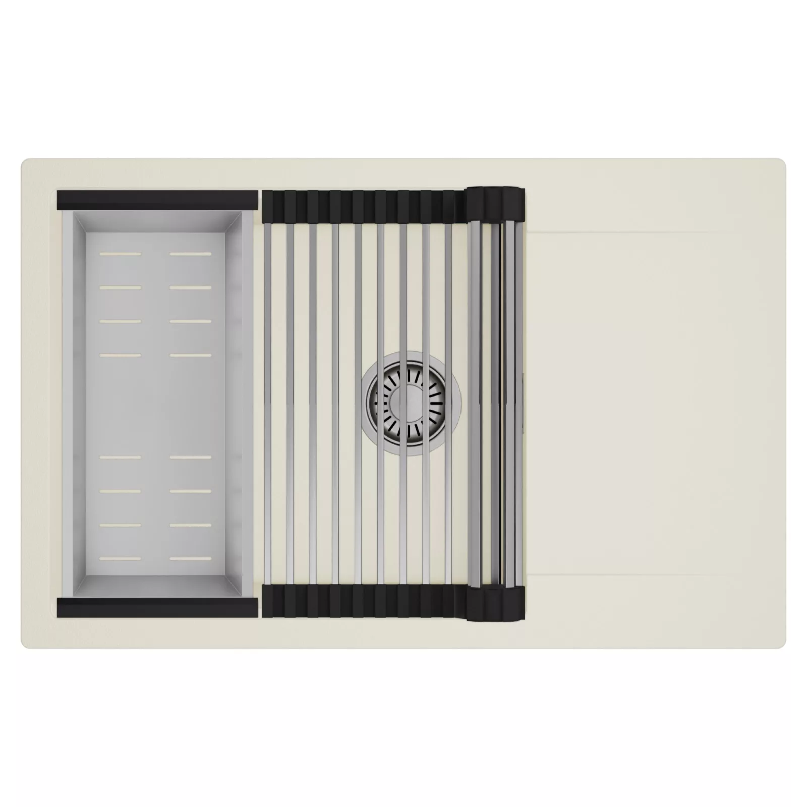 HD Onyx White 78-XL egymedencés mosogatótálca szett, csepegtetőráccsal és kosárral, tört fehér