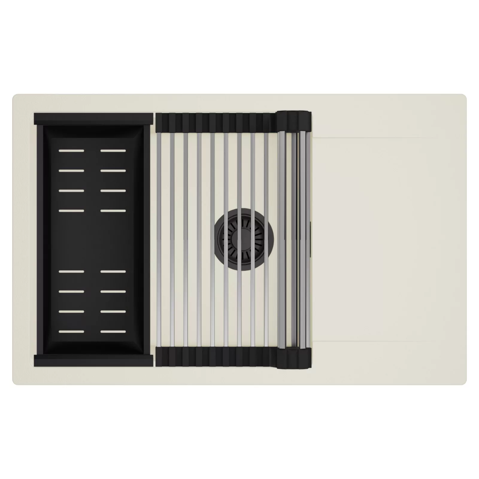 HD Onyx White 78-XL egymedencés mosogatótálca szett, csepegtetőráccsal és kosárral, tört fehér