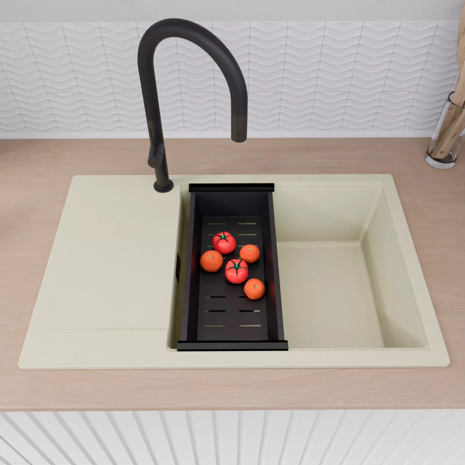 A mosogató prémium minőségű gránit kompozitból készült. Letisztult megjelenése mellett rendkívül praktikus, így bármilyen stílusú konyhába harmonikusan illeszkedik. A strapabíró gránit anyag hosszú távon is megbízható használatot garantál.