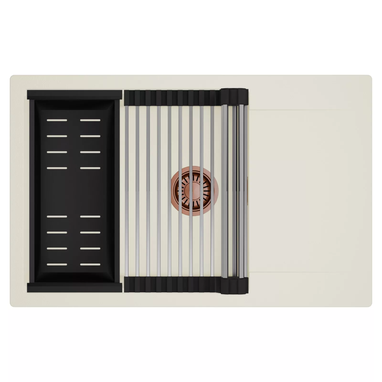 HD Onyx White 78-XL egymedencés mosogatótálca szett, csepegtetőráccsal és kosárral, tört fehér