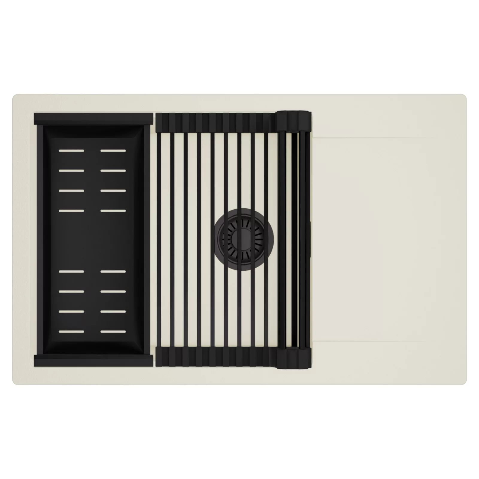 HD Onyx White 78-XL egymedencés mosogatótálca szett, csepegtetőráccsal és kosárral, tört fehér