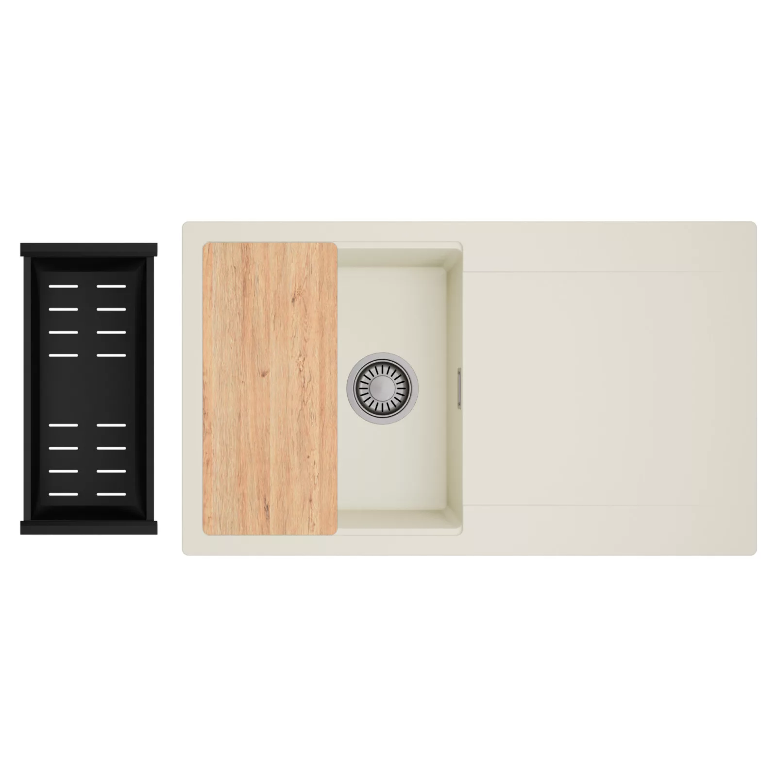 HD Onyx White 86 egymedencés mosogatótálca szett, vágódeszkával és csepegtetőkosárral, tört fehér