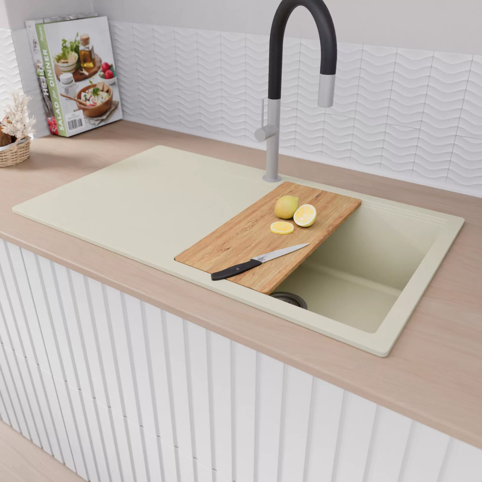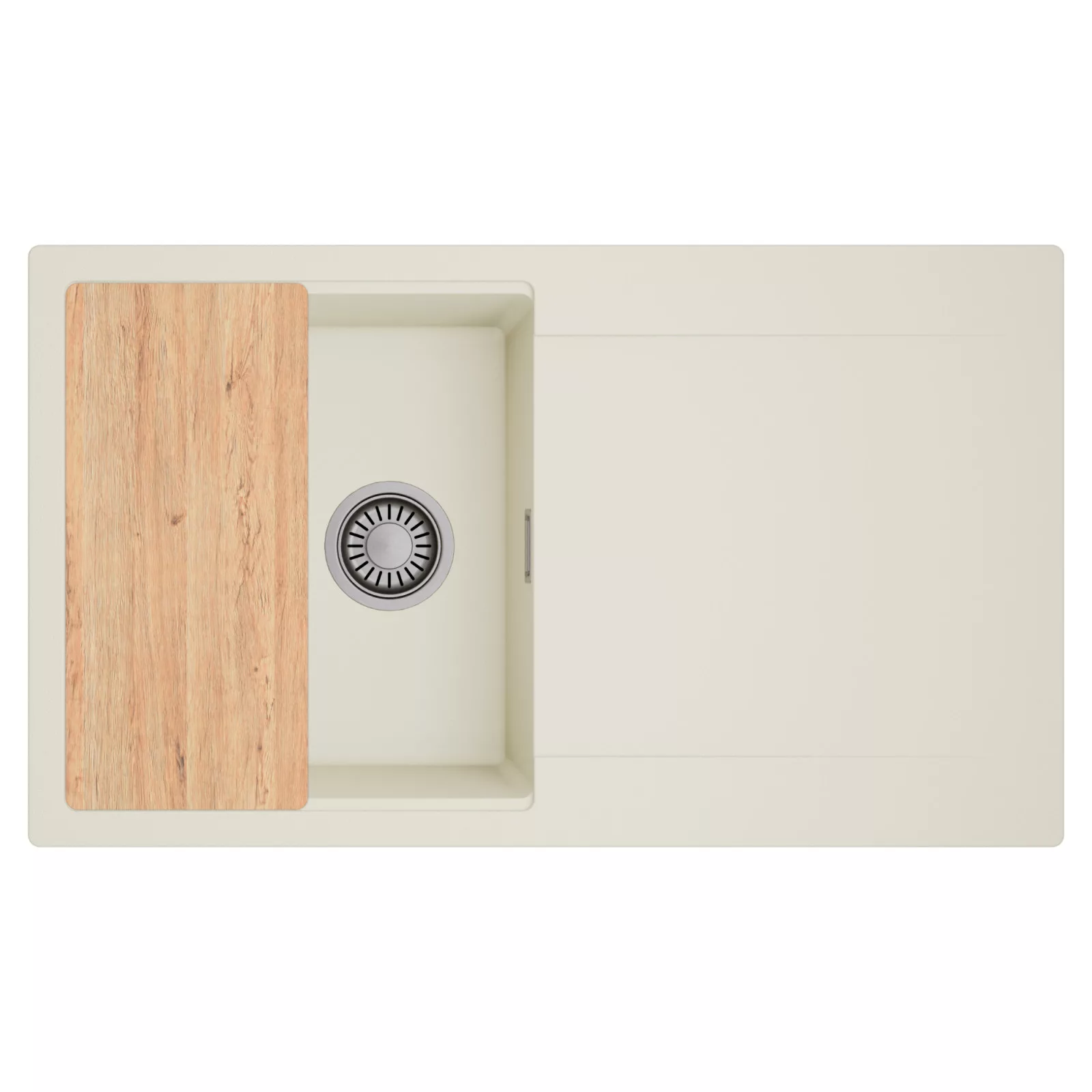 HD Onyx White 86 egymedencés mosogatótálca szett, vágódeszkával, tört fehér