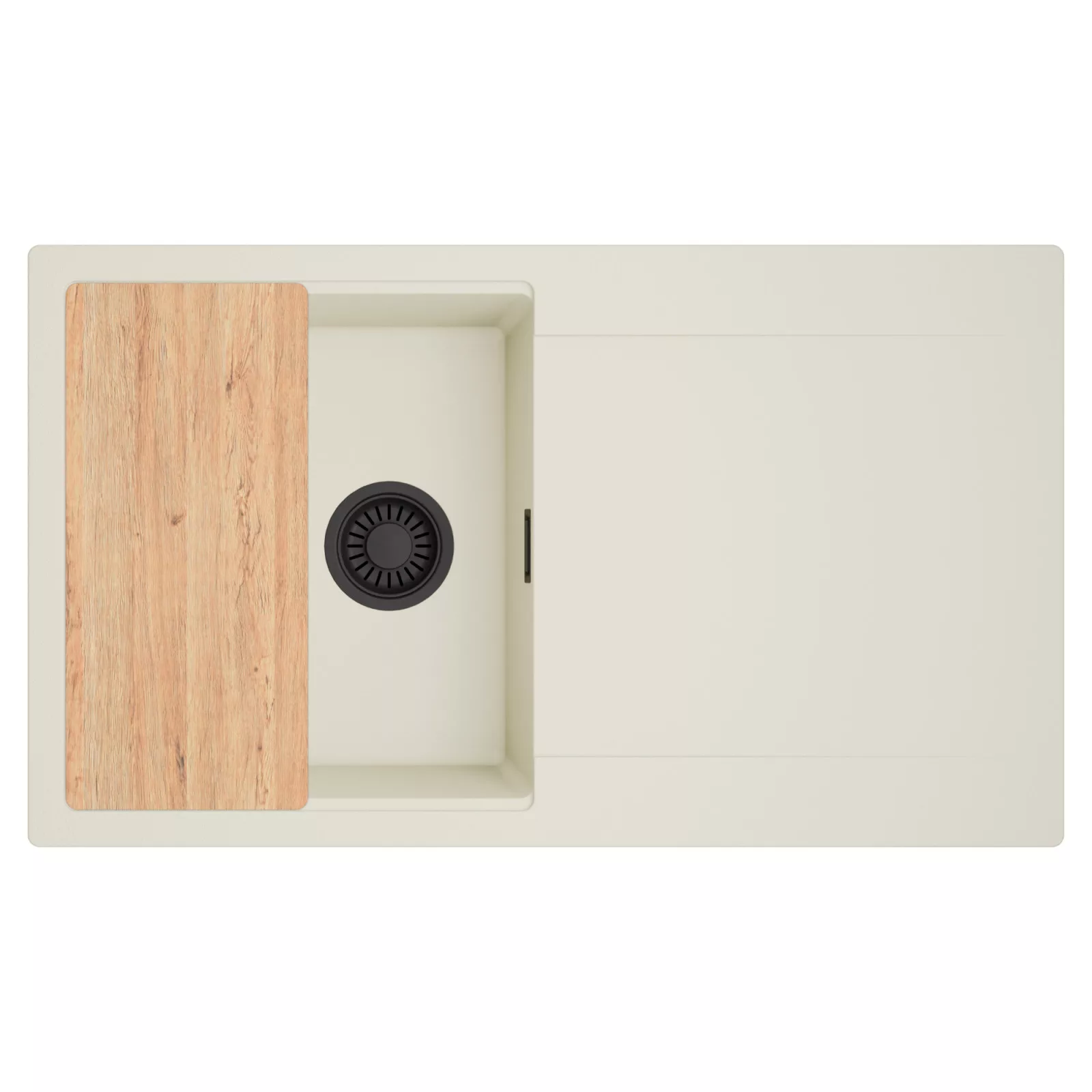 HD Onyx White 86 egymedencés mosogatótálca szett, vágódeszkával, tört fehér