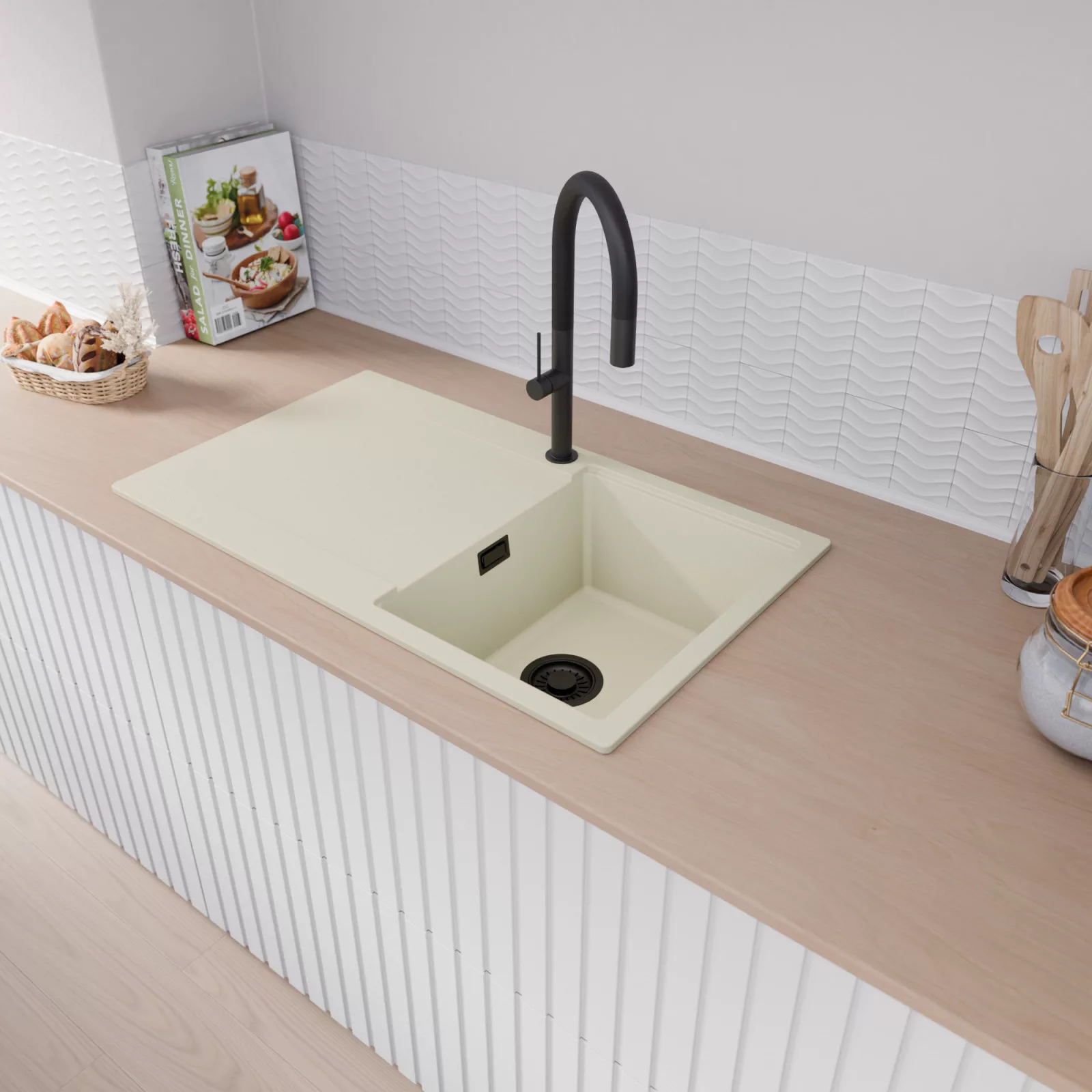 A mosogató prémium minőségű gránit kompozitból készült. Letisztult megjelenése mellett rendkívül praktikus, így bármilyen stílusú konyhába harmonikusan illeszkedik. A strapabíró gránit anyag hosszú távon is megbízható használatot garantál.