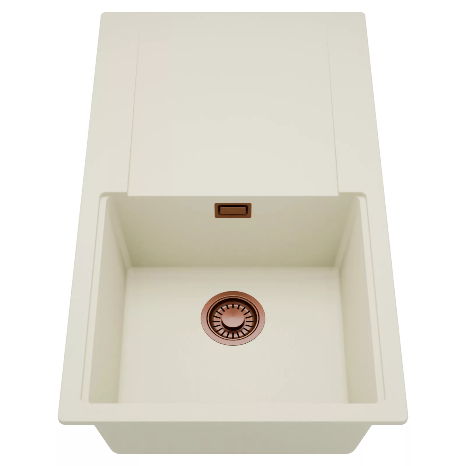 A mosogató prémium minőségű gránit kompozitból készült, amely kiváló ellenállást biztosít a mindennapi használat során keletkező karcolásokkal szemben. A strapabíró gránit felület hosszú távon is megőrzi esztétikus megjelenését, így a mosogató intenzív igénybevétel mellett is megmarad újszerű állapotában.