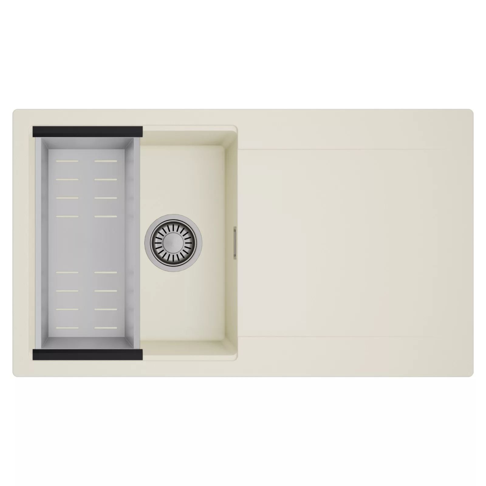 HD Onyx White 86 egymedencés mosogatótálca szett, csepegtetőkosárral, tört fehér