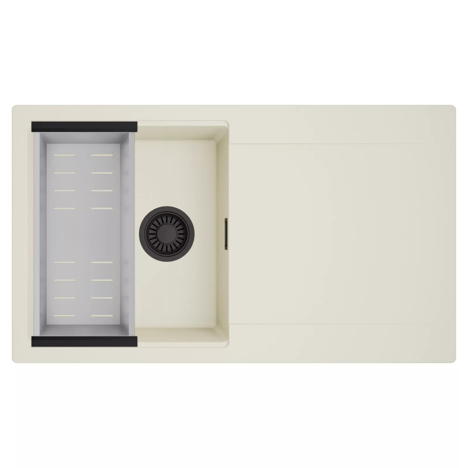 HD Onyx White 86 egymedencés mosogatótálca szett, csepegtetőkosárral, tört fehér