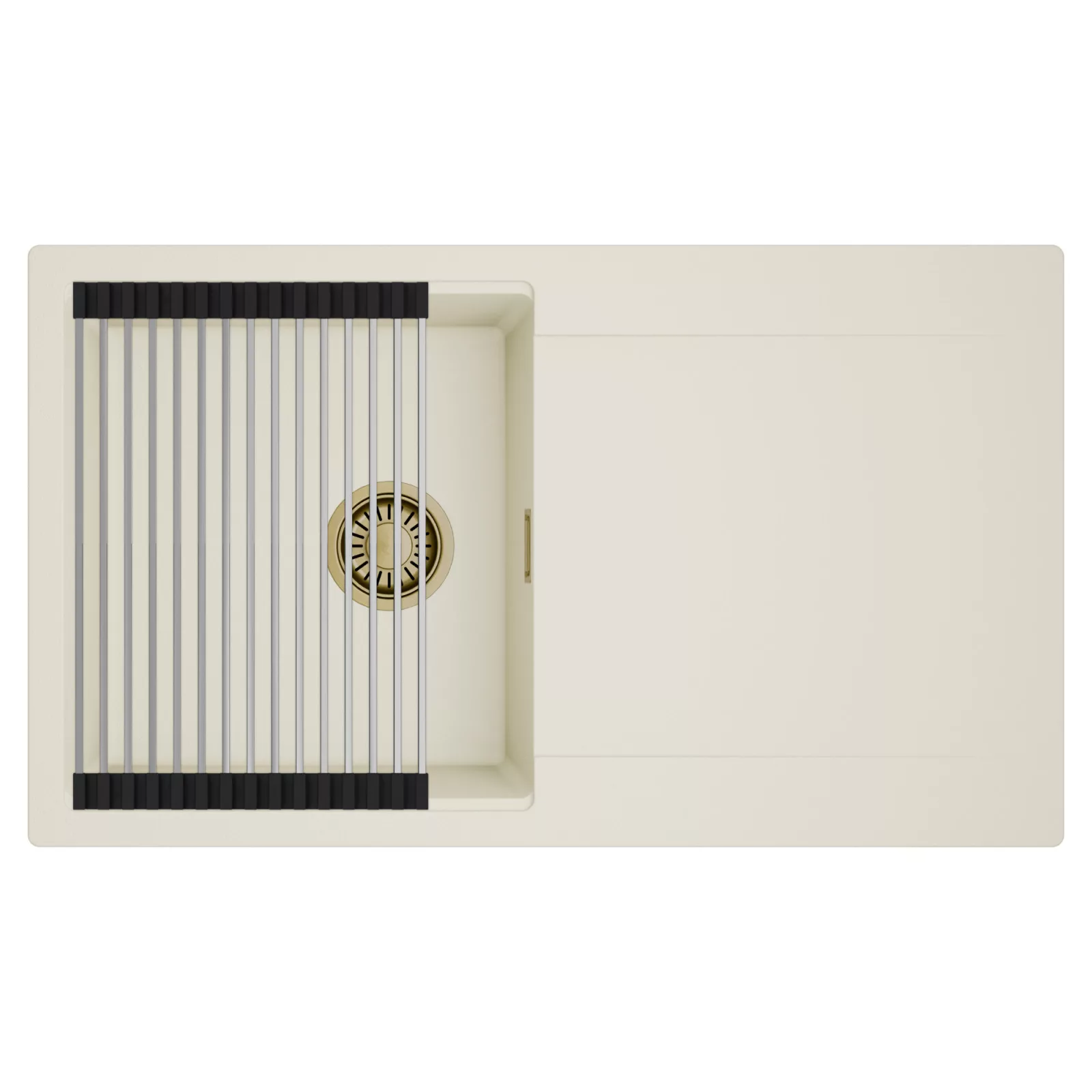 HD Onyx White 86 egymedencés mosogatótálca szett, csepegtetőráccsal, tört fehér