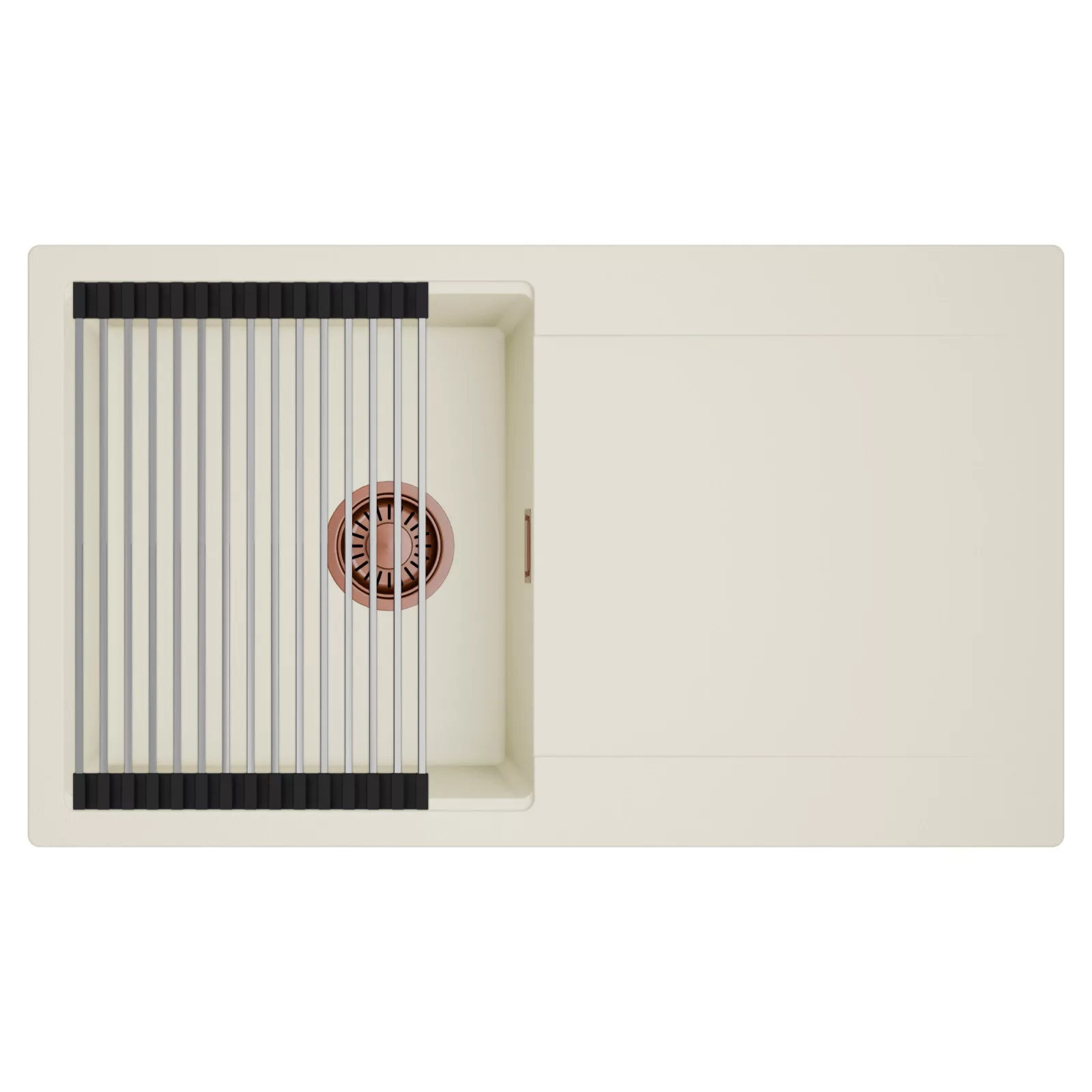 HD Onyx White 86 egymedencés mosogatótálca szett, csepegtetőráccsal, tört fehér