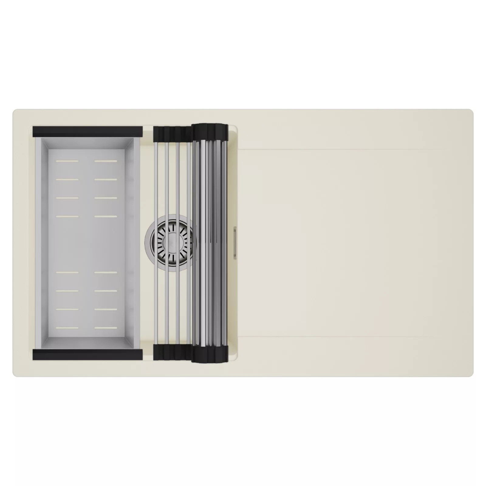 HD Onyx White 86 egymedencés mosogatótálca szett, csepegtetőráccsal és kosárral, tört fehér