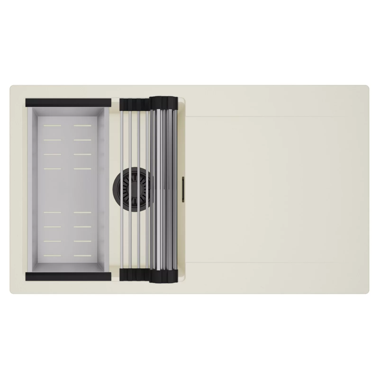 HD Onyx White 86 egymedencés mosogatótálca szett, csepegtetőráccsal és kosárral, tört fehér