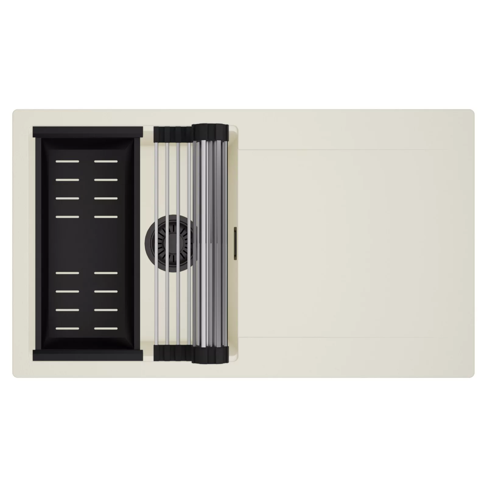 HD Onyx White 86 egymedencés mosogatótálca szett, csepegtetőráccsal és kosárral, tört fehér