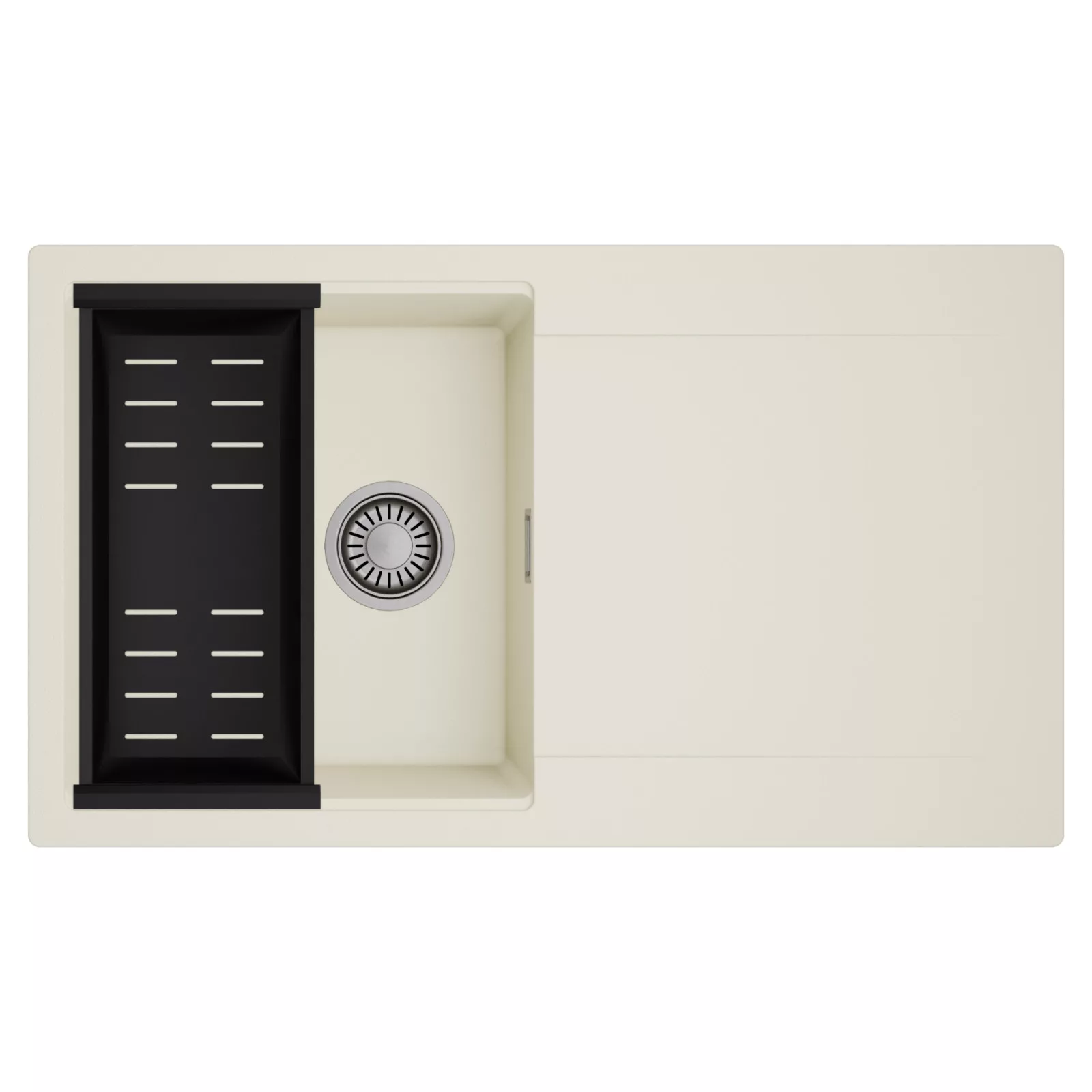 HD Onyx White 86 egymedencés mosogatótálca szett, csepegtetőkosárral, tört fehér