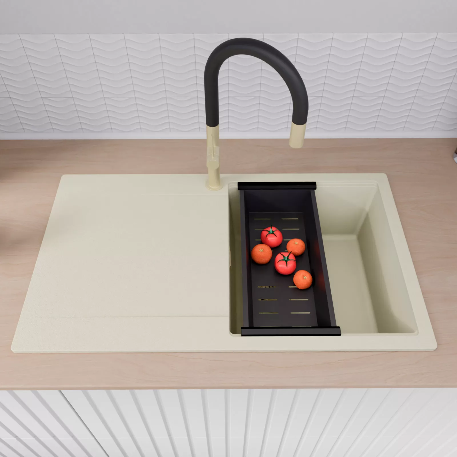 A mosogató prémium minőségű gránit kompozitból készült. Letisztult megjelenése mellett rendkívül praktikus, így bármilyen stílusú konyhába harmonikusan illeszkedik. A strapabíró gránit anyag hosszú távon is megbízható használatot garantál.
