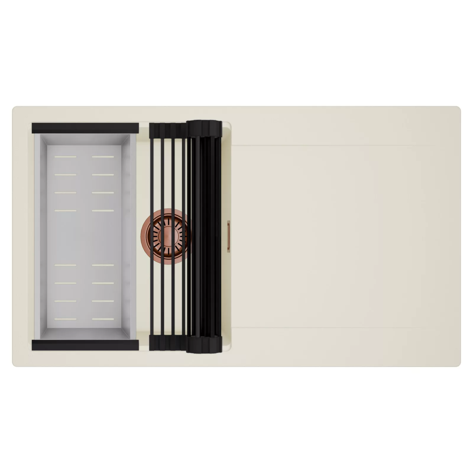 HD Onyx White 86 egymedencés mosogatótálca szett, csepegtetőráccsal és kosárral, tört fehér