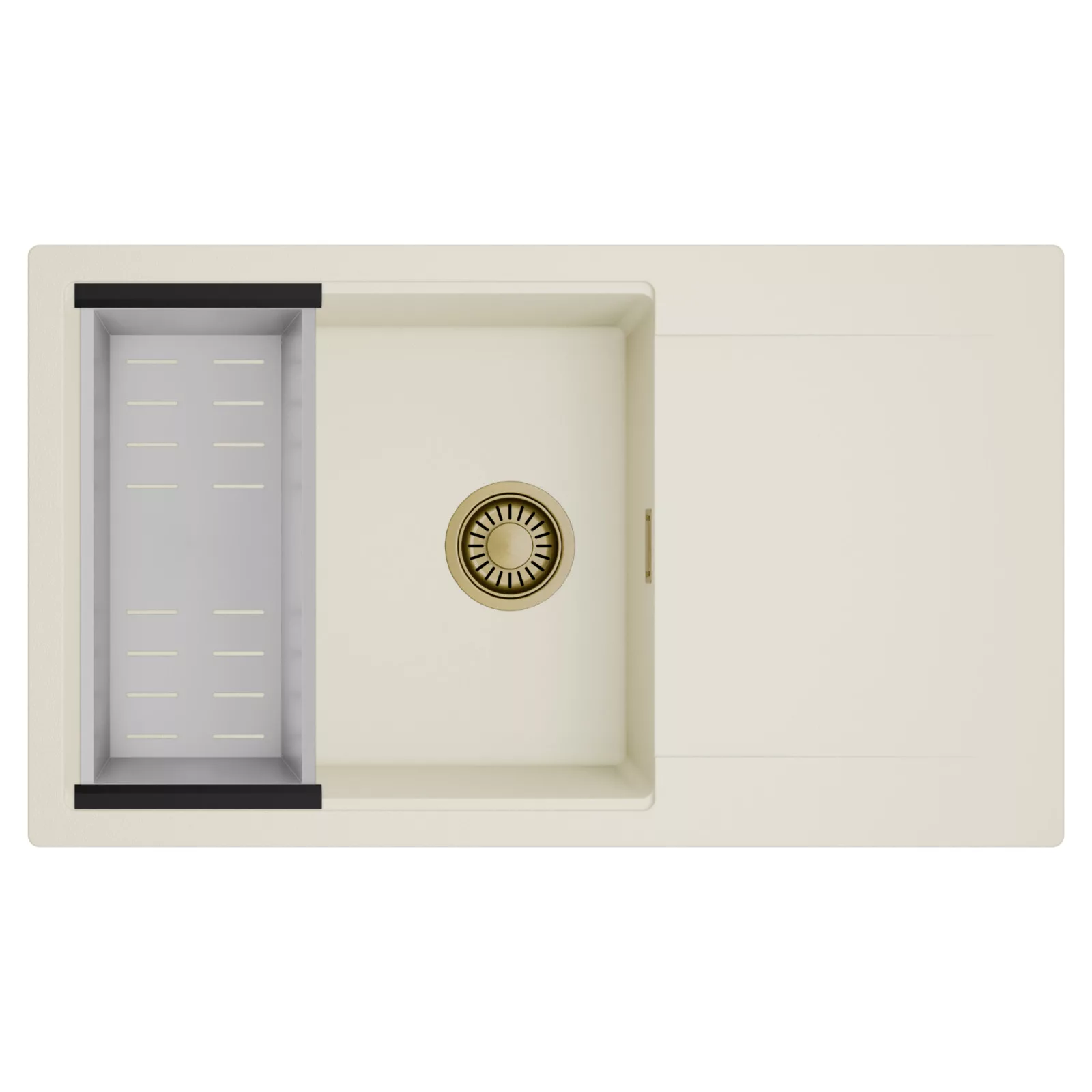 HD Onyx White 86-XL egymedencés mosogatótálca szett, csepegtetőkosárral, tört fehér