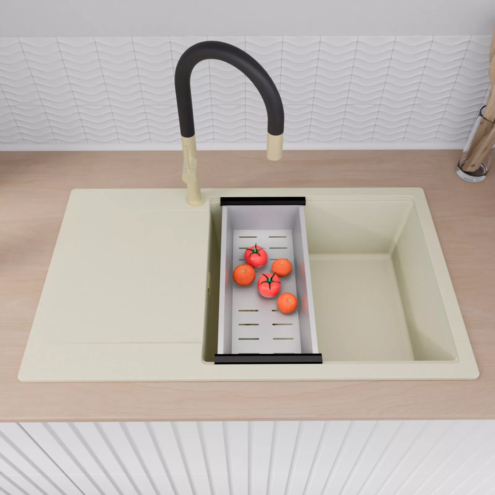 Mosogatónk magas természetes kőőrlemény-tartalmú gránit kompozitból készül, amely rendkívüli stabilitást és tartósságot biztosít. Az anyag ellenáll a magas hőmérsékletnek, a hirtelen hőingadozásoknak, valamint az ütéseknek és karcolásoknak is. Sima, zárt felülete könnyen tisztán tartható, ellenáll a foltosodásnak és az elszíneződéseknek, így hosszú éveken át megőrzi esztétikus megjelenését. Meggyőződésünk, hogy ezzel a gránit mosogatóval a mindennapi konyhai teendők kényelmesebbé és élvezetesebbé válnak.