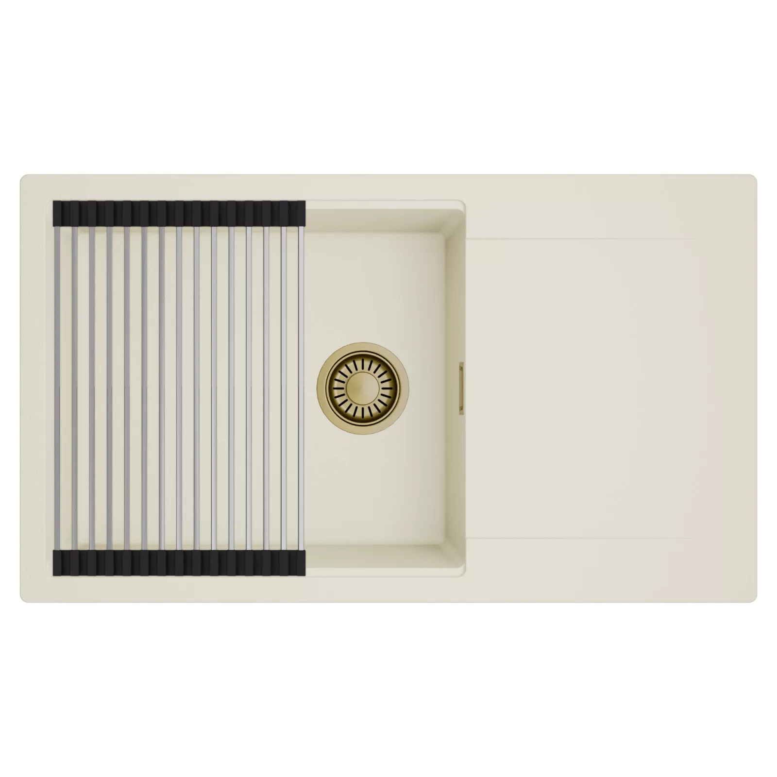 HD Onyx White 86-XL egymedencés mosogatótálca szett, csepegtetőráccsal, tört fehér
