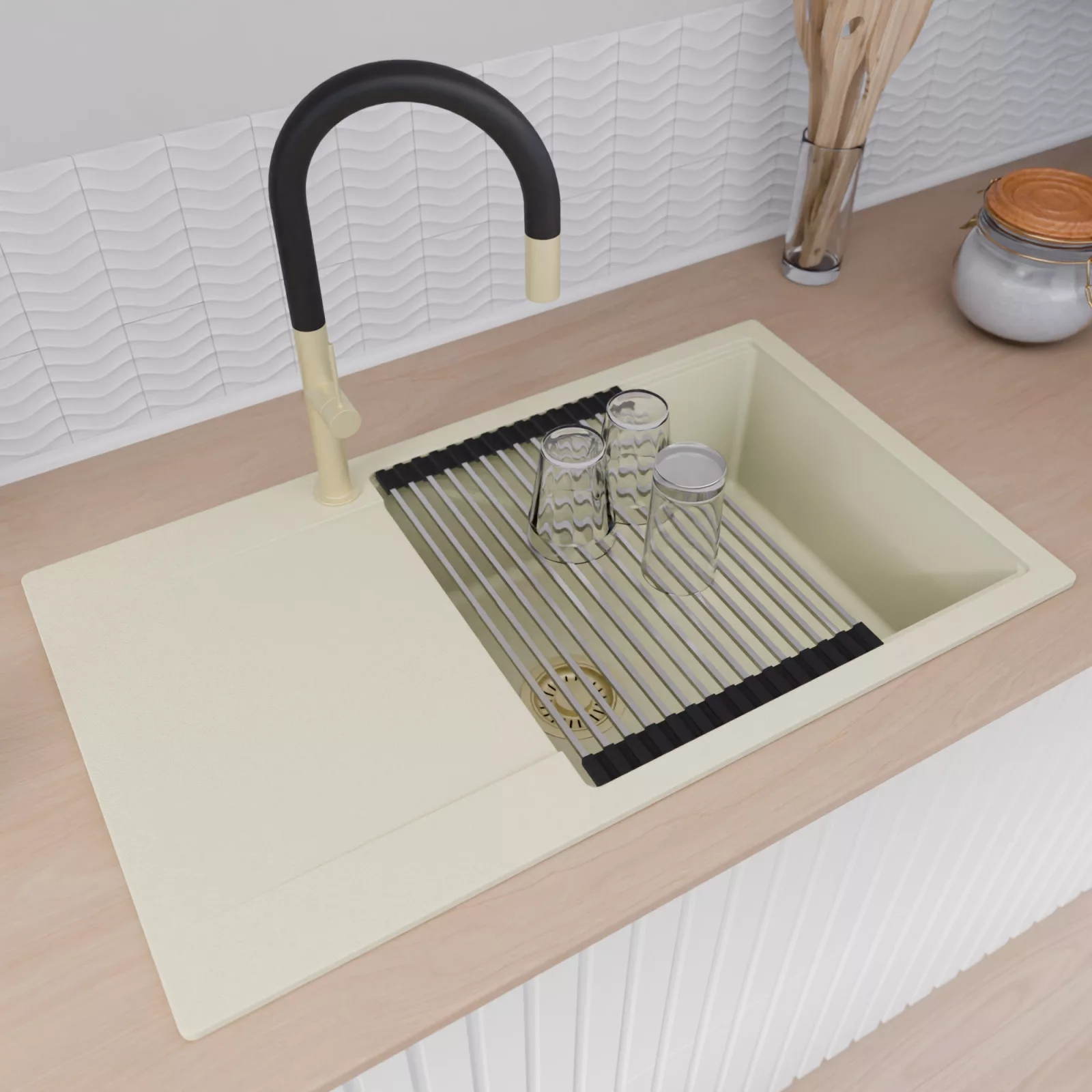 A mosogató prémium minőségű gránit kompozitból készült. Letisztult megjelenése mellett rendkívül praktikus, így bármilyen stílusú konyhába harmonikusan illeszkedik. A strapabíró gránit anyag hosszú távon is megbízható használatot garantál.