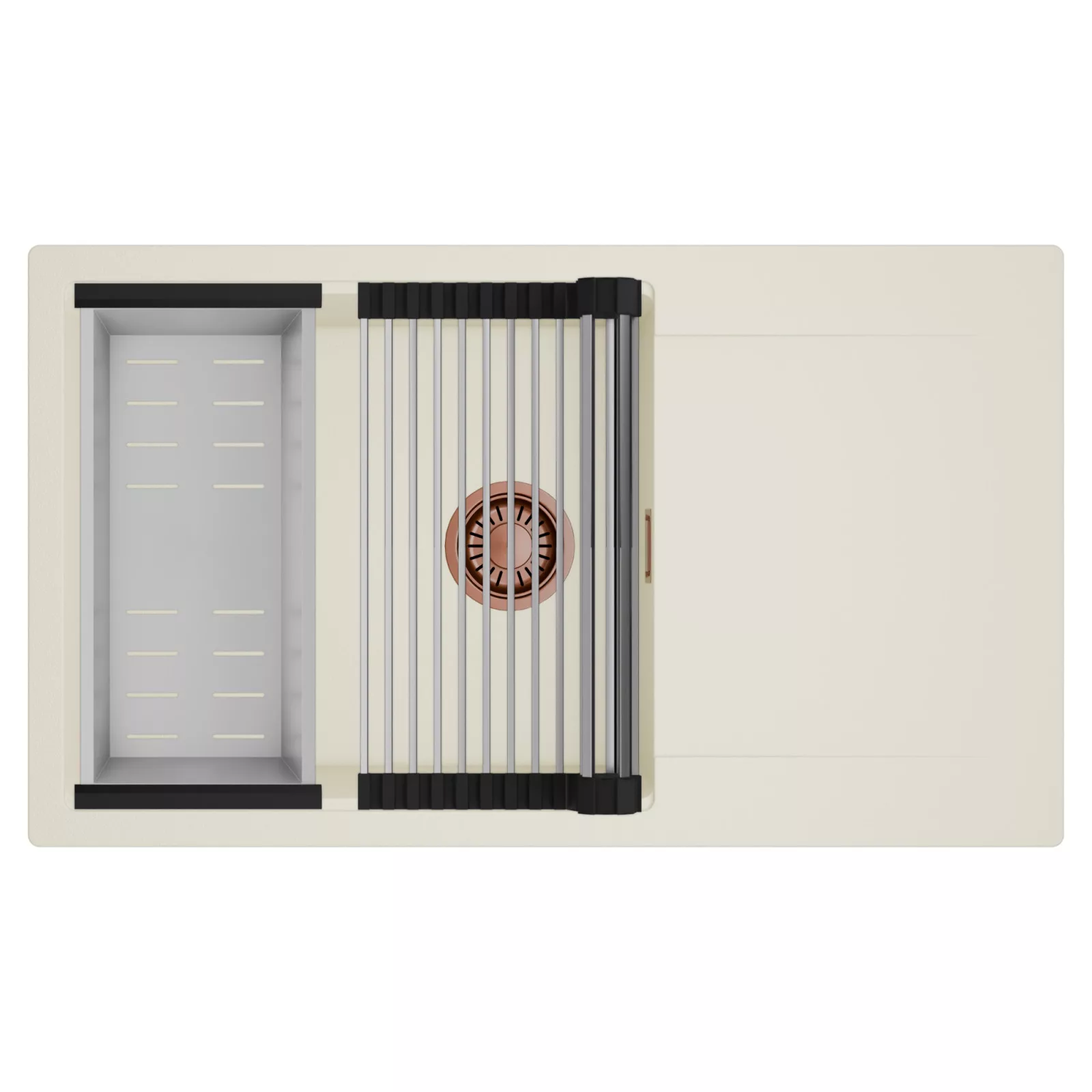 HD Onyx White 86-XL egymedencés mosogatótálca szett, csepegtetőráccsal és kosárral, tört fehér