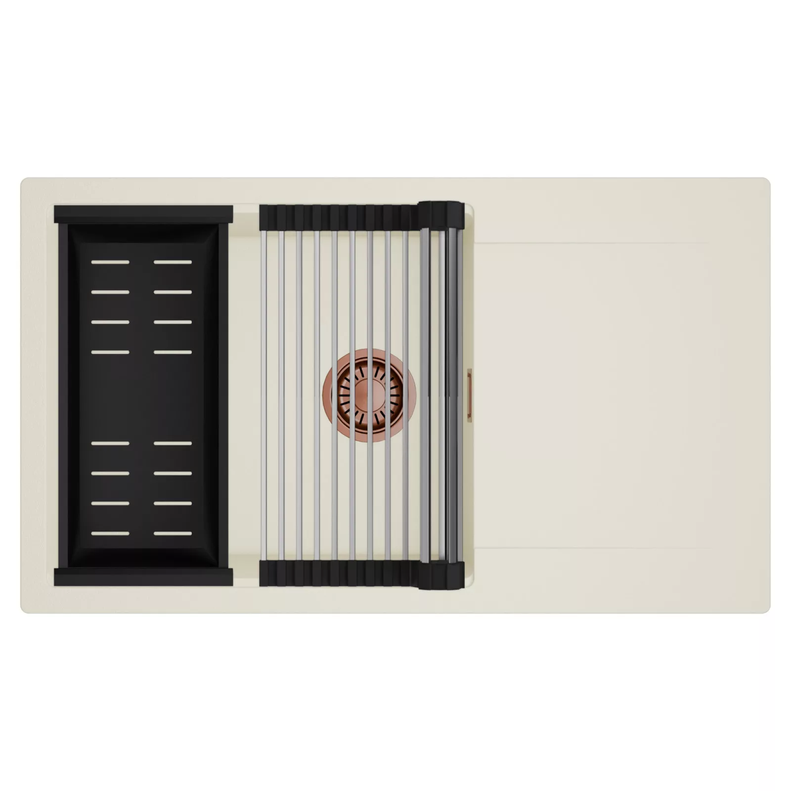 HD Onyx White 86-XL egymedencés mosogatótálca szett, csepegtetőráccsal és kosárral, tört fehér