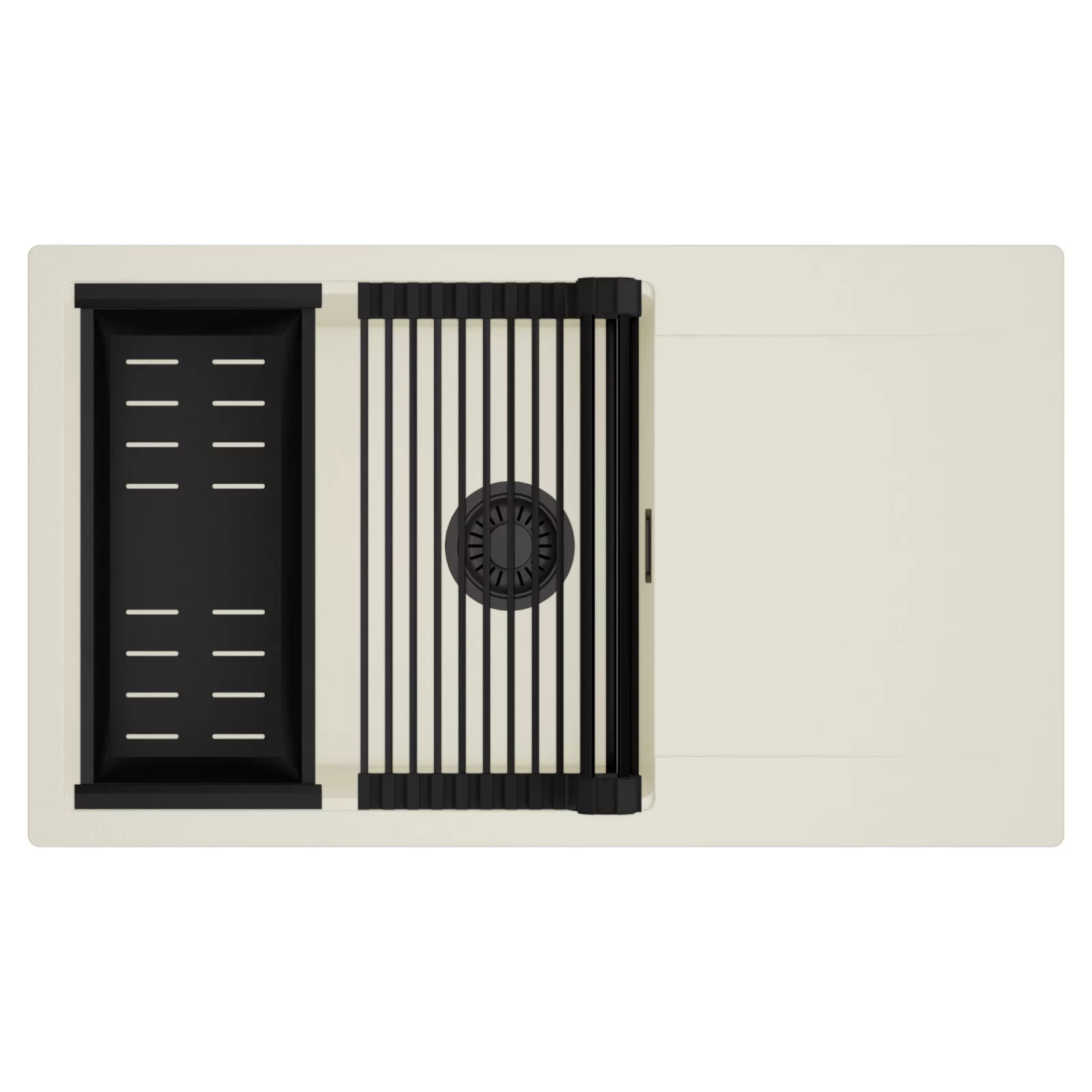 HD Onyx White 86-XL egymedencés mosogatótálca szett, csepegtetőráccsal és kosárral, tört fehér