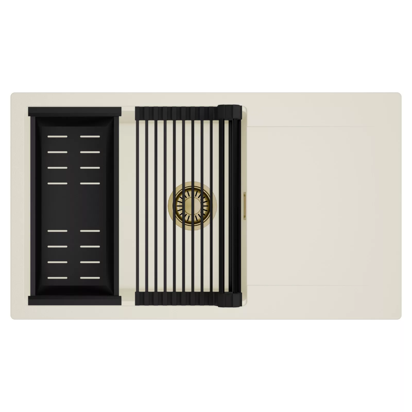 HD Onyx White 86-XL egymedencés mosogatótálca szett, csepegtetőráccsal és kosárral, tört fehér