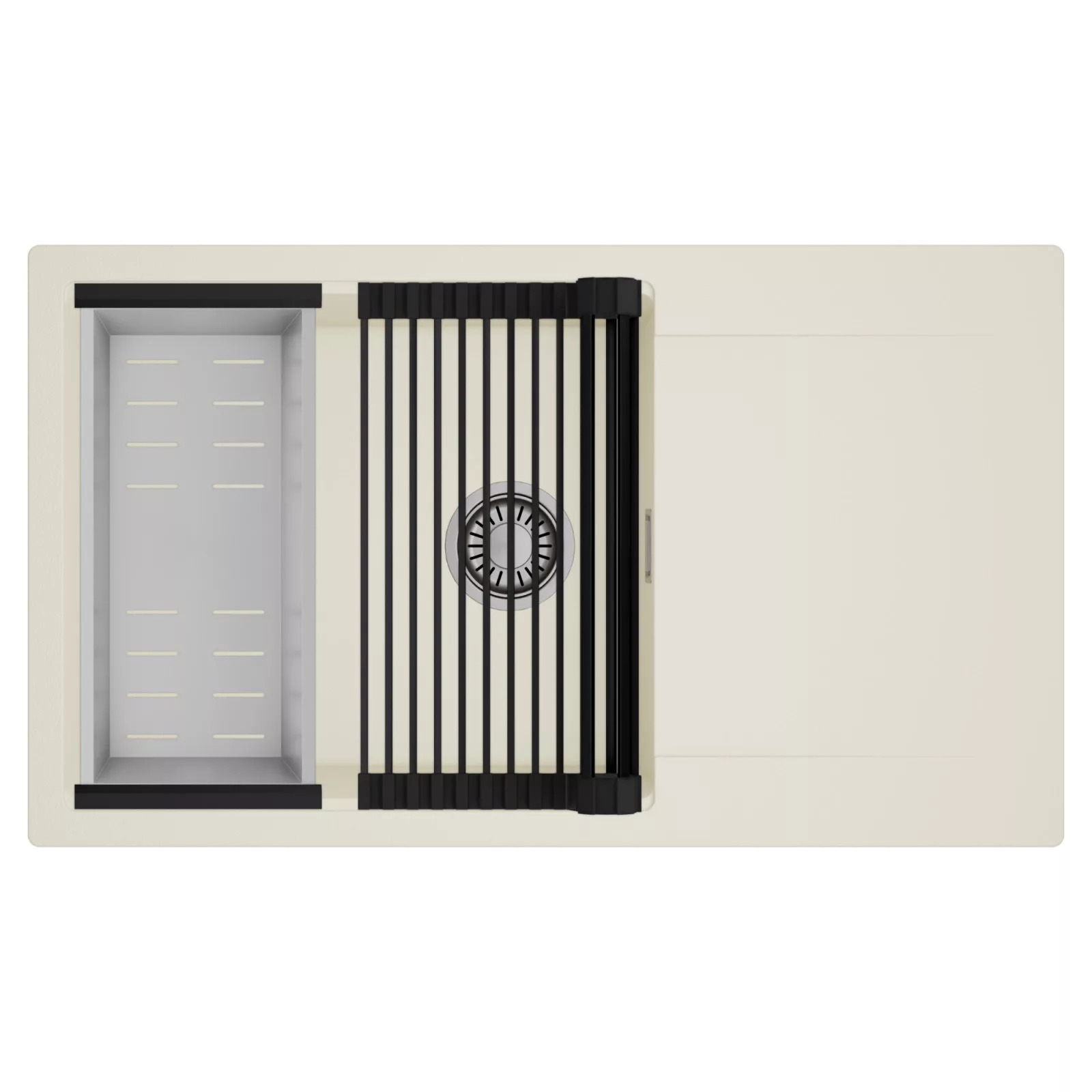 HD Onyx White 86-XL egymedencés mosogatótálca szett, csepegtetőráccsal és kosárral, tört fehér
