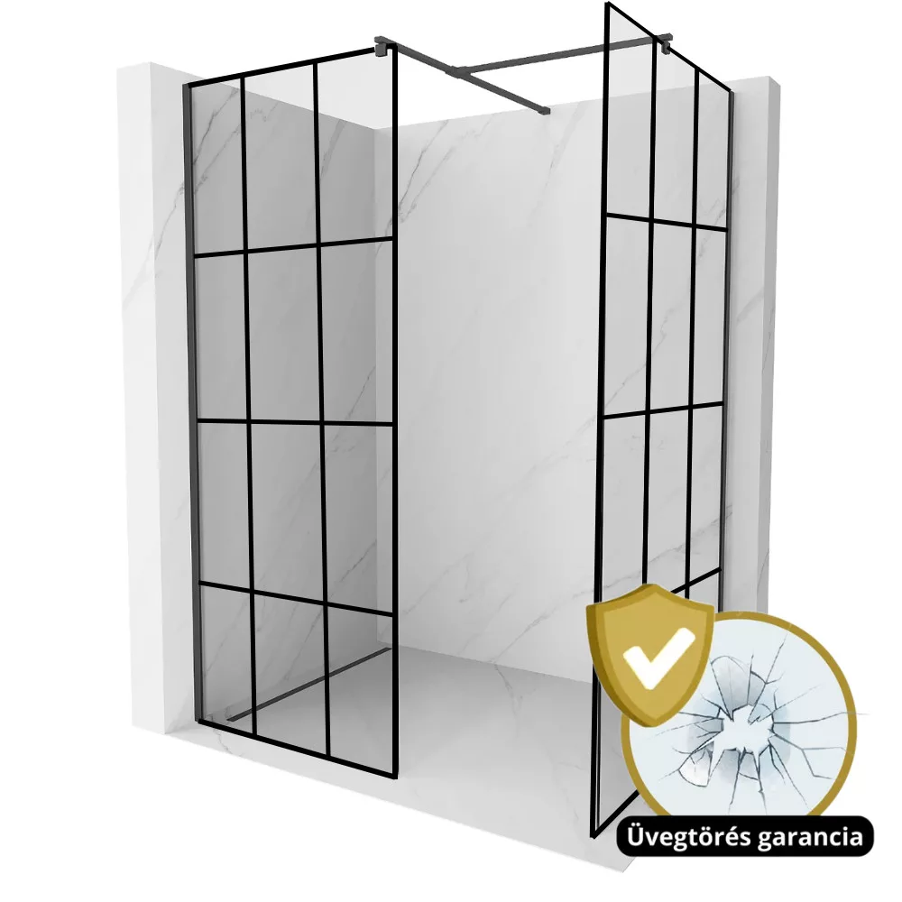 - 1 db 70 cm széles, Prémium alumínium fekete kerettel ellátott 8 mm vastag biztonsági üveg keresztmintával és nano bevonattal