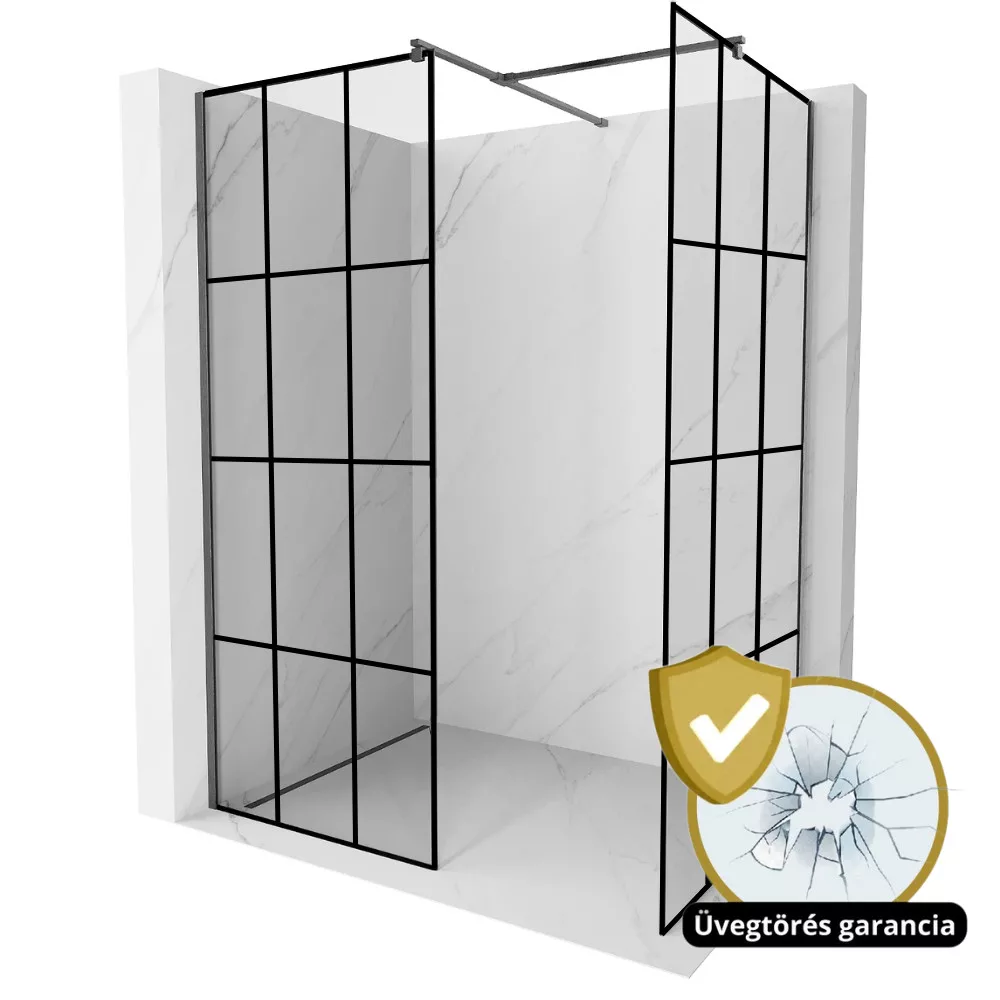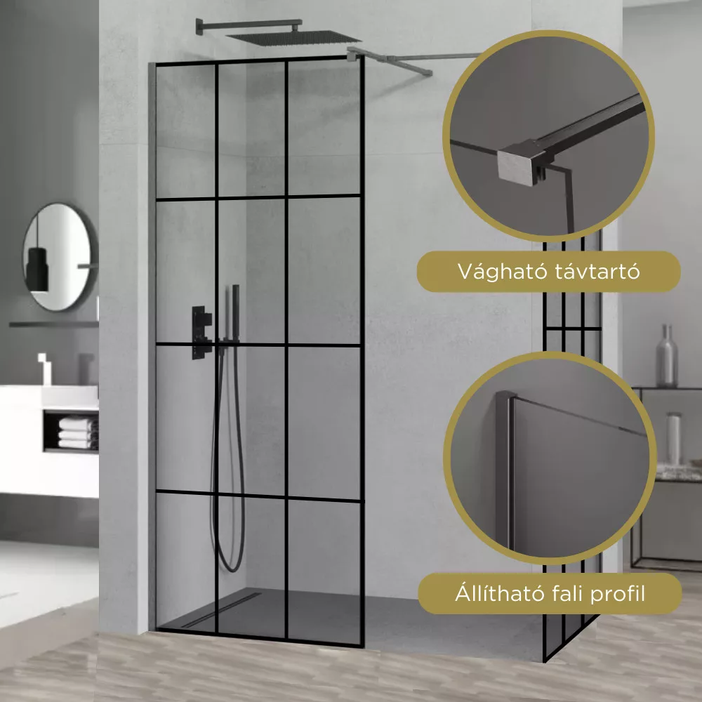 - 1 db 70 cm széles, Prémium alumínium fekete kerettel ellátott 8 mm vastag biztonsági üveg keresztmintával és nano bevonattal