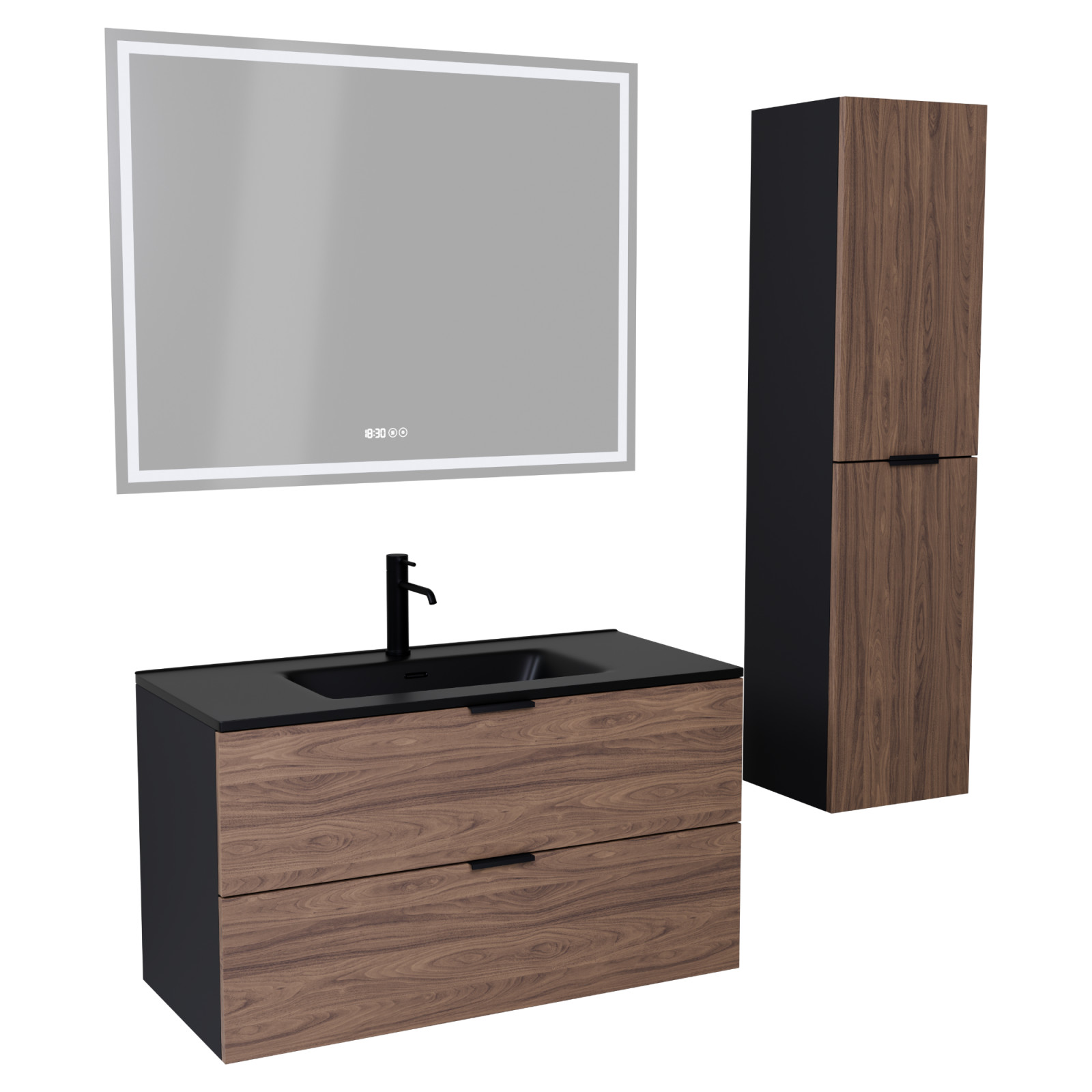 Palermo Black-Oak 100 komplett fürdőszoba bútor szett, matt fekete fogantyúkkal