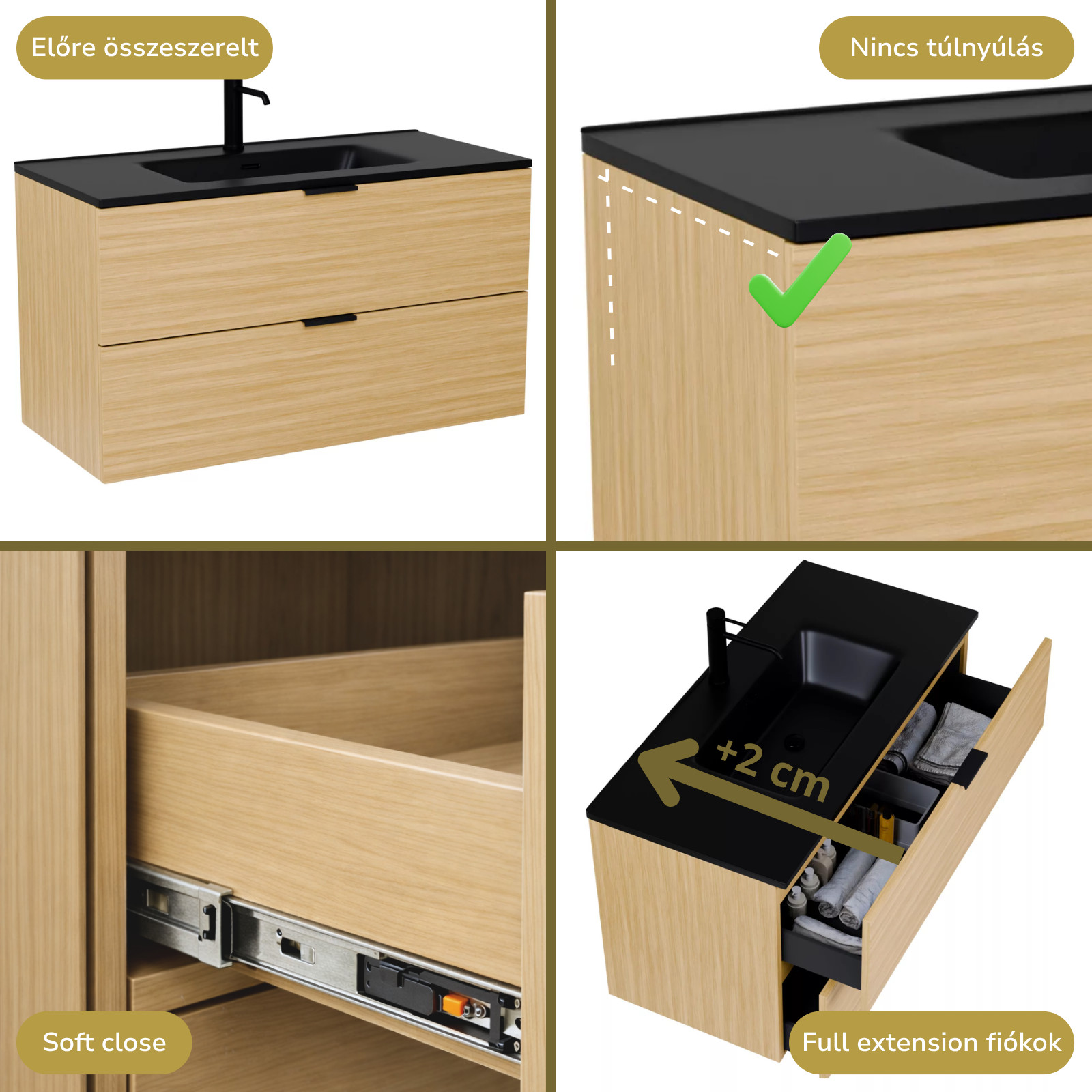 A bútort összeszerelve szállítjuk ki, így Önnek csak a mosdót és a fiók frontot kell ráhelyeznie!