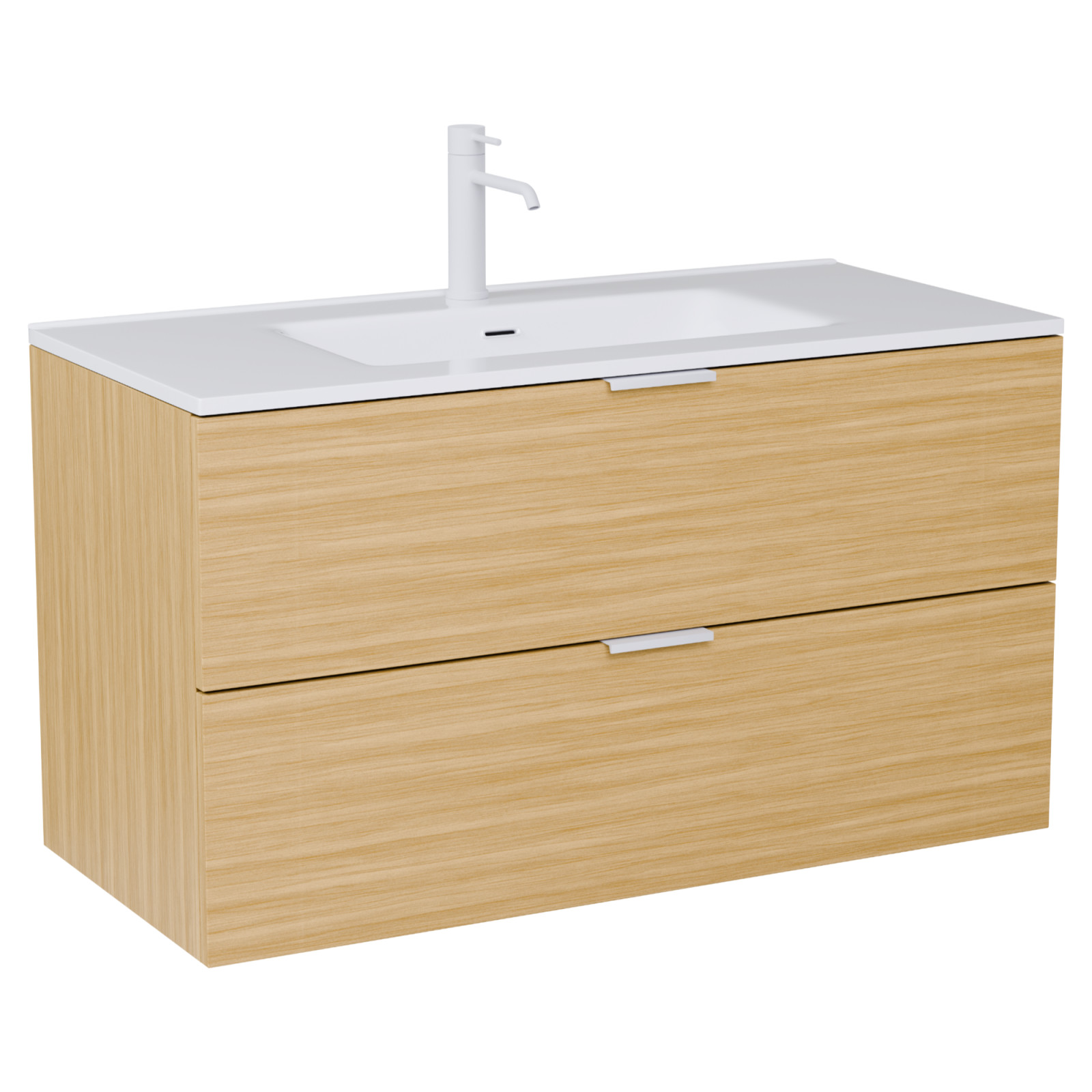 Palermo Hickory 100 komplett fürdőszoba bútor szett, matt fehér fogantyúkkal