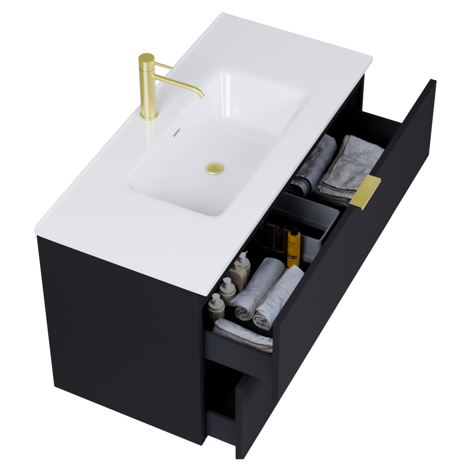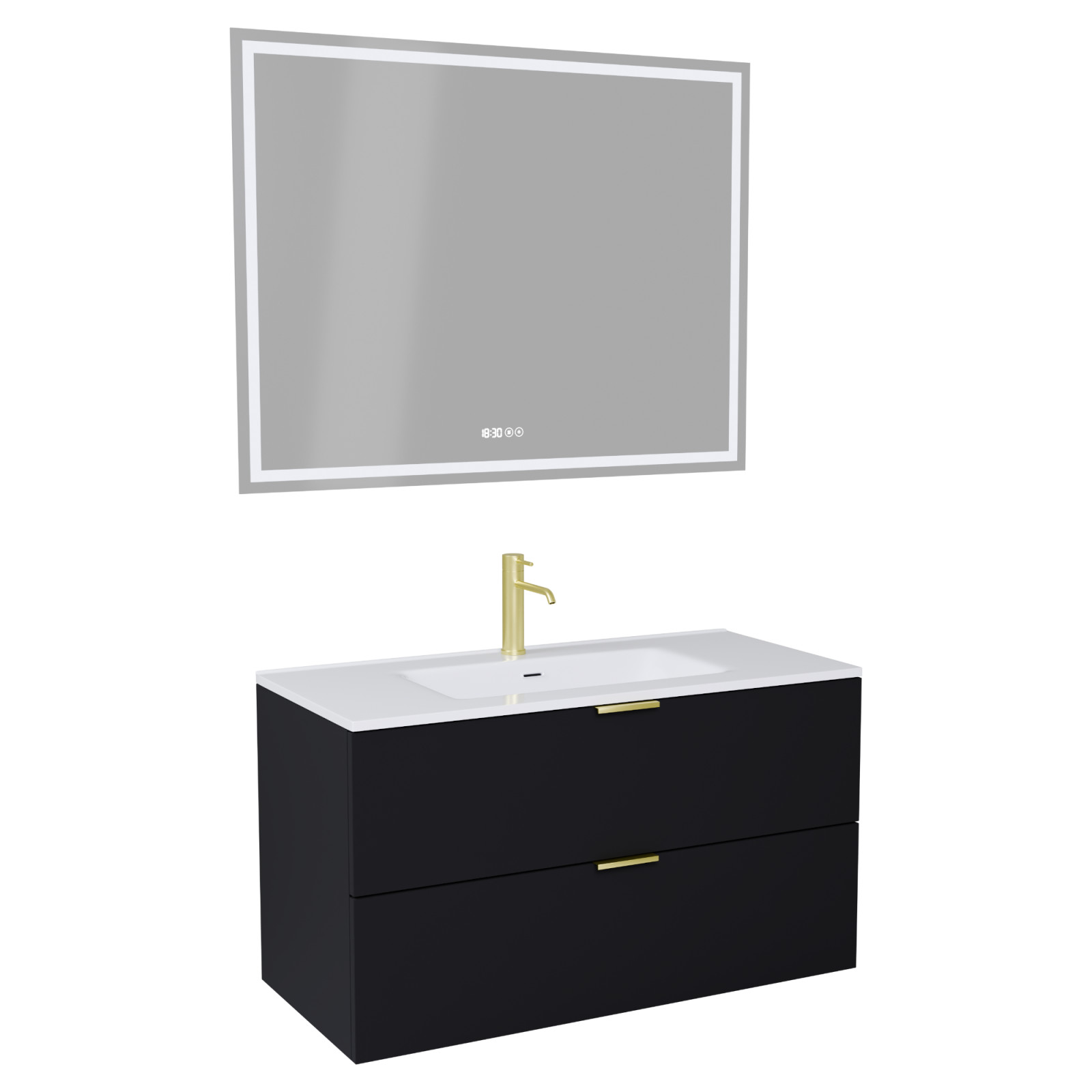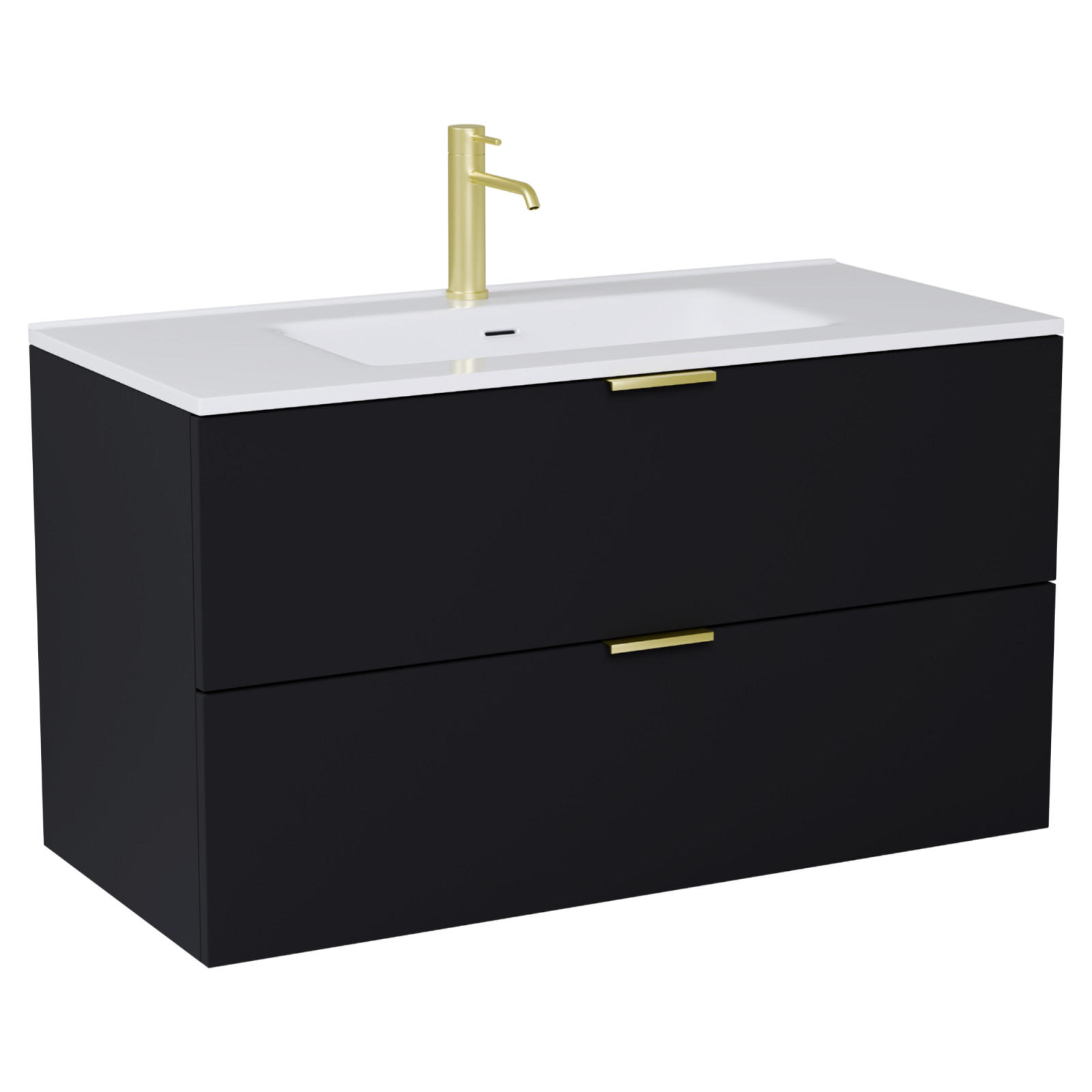 Palermo Matt Black 100 komplett fürdőszoba bútor, szálcsiszolt arany fogantyúkkal